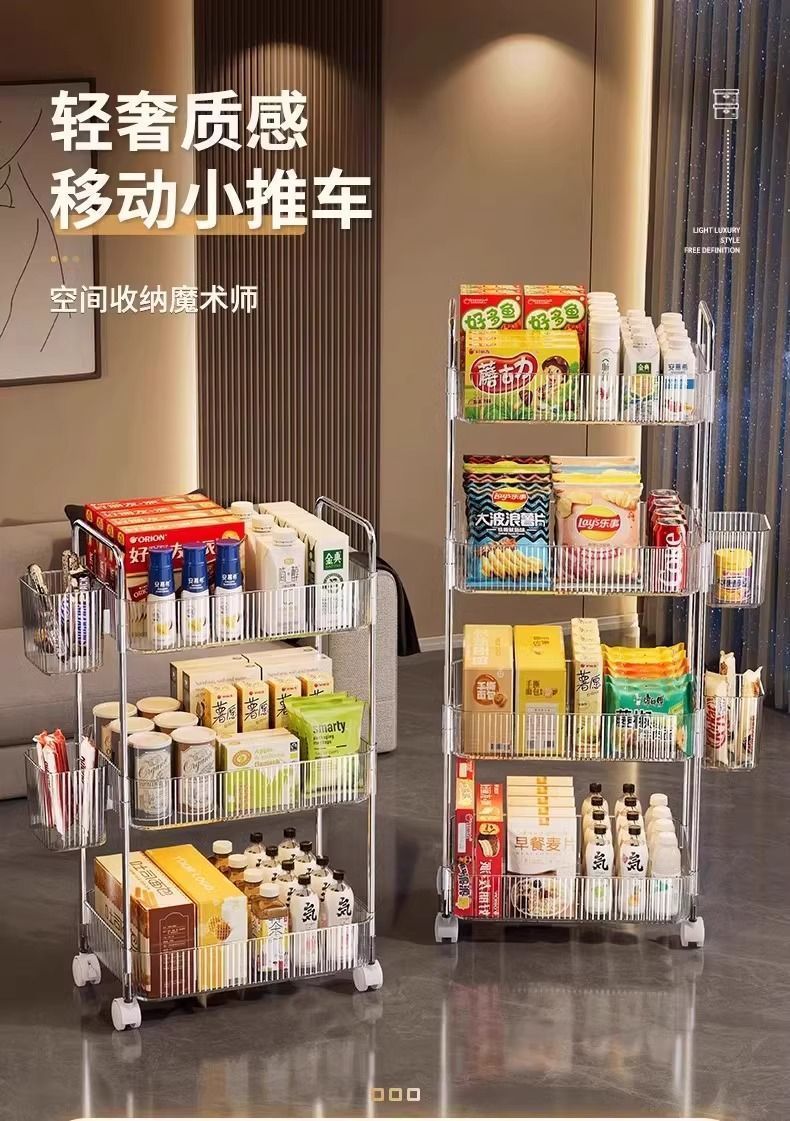 亚克力床头零食多层化妆品收纳架子浴室透明小推车置物架落地