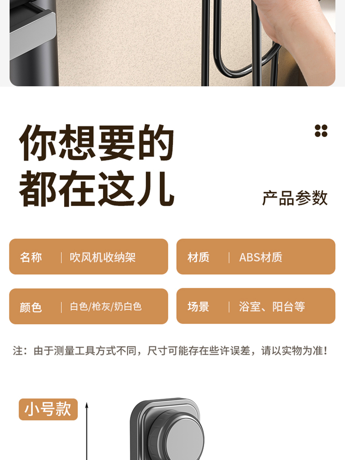奶白标准款/吹风机架【吸盘免打孔】