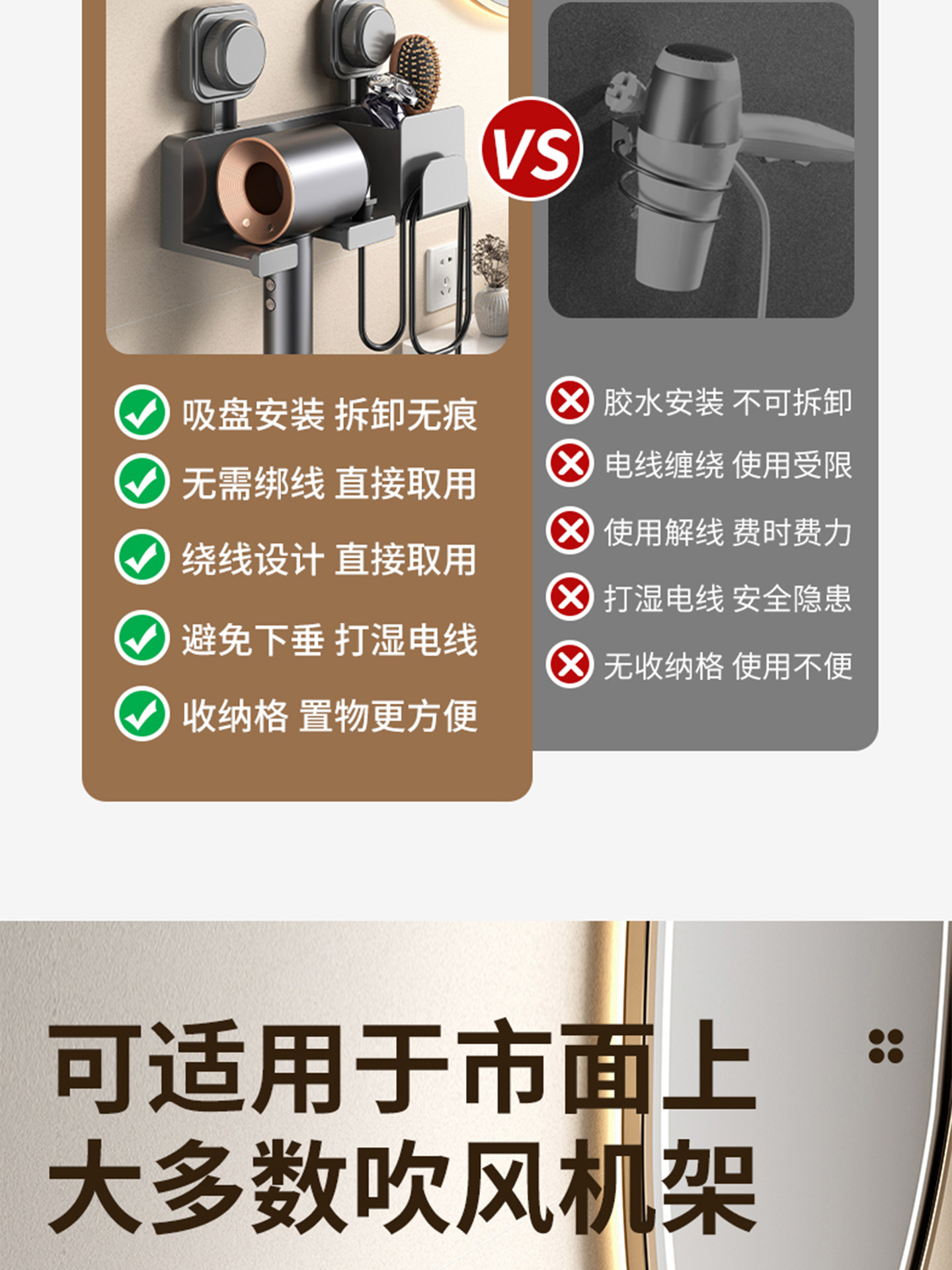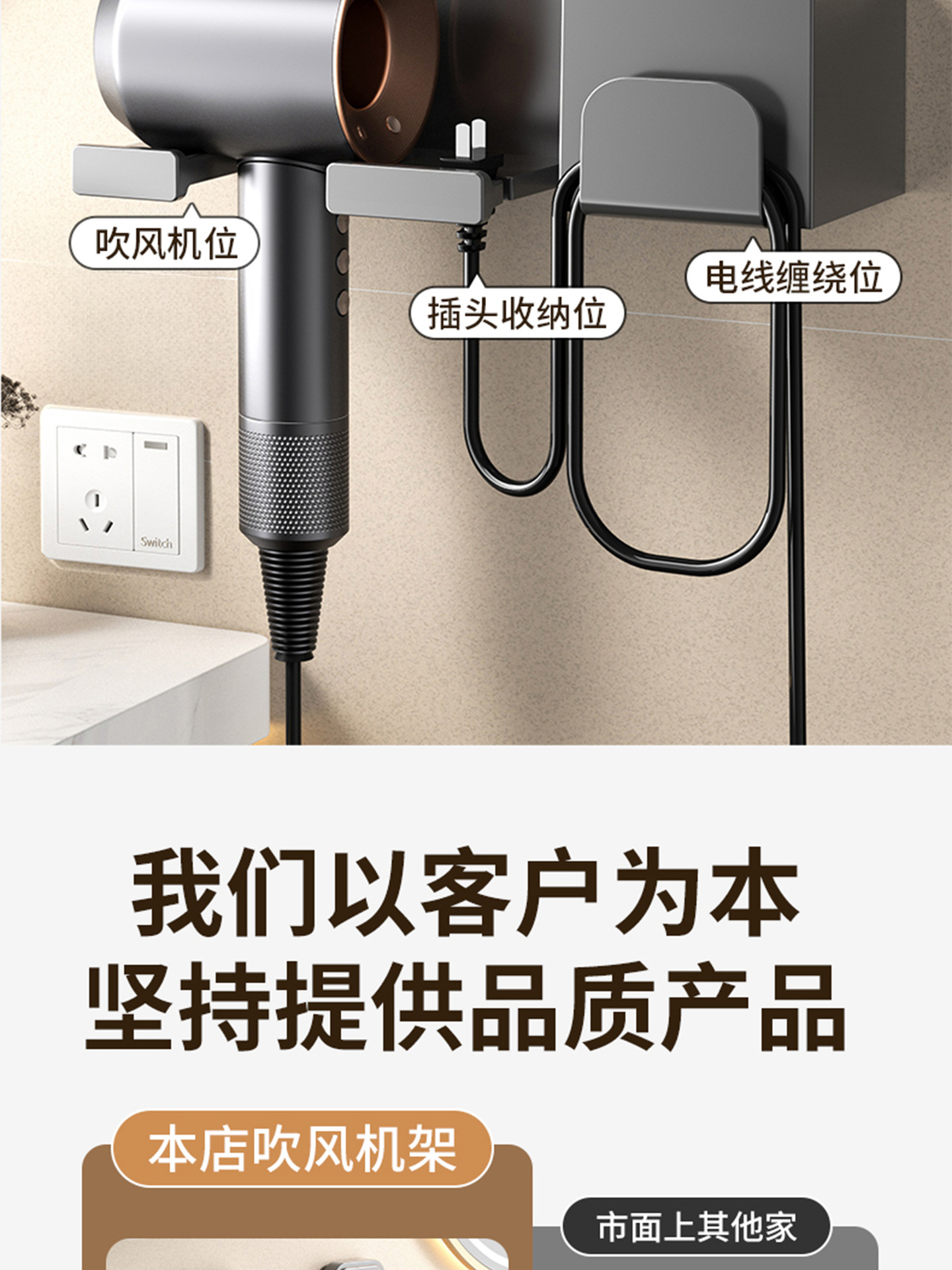 商品名称:吸盘吹风机置物架卫生间免打孔风筒架浴室架子电吹风壁挂收纳神器