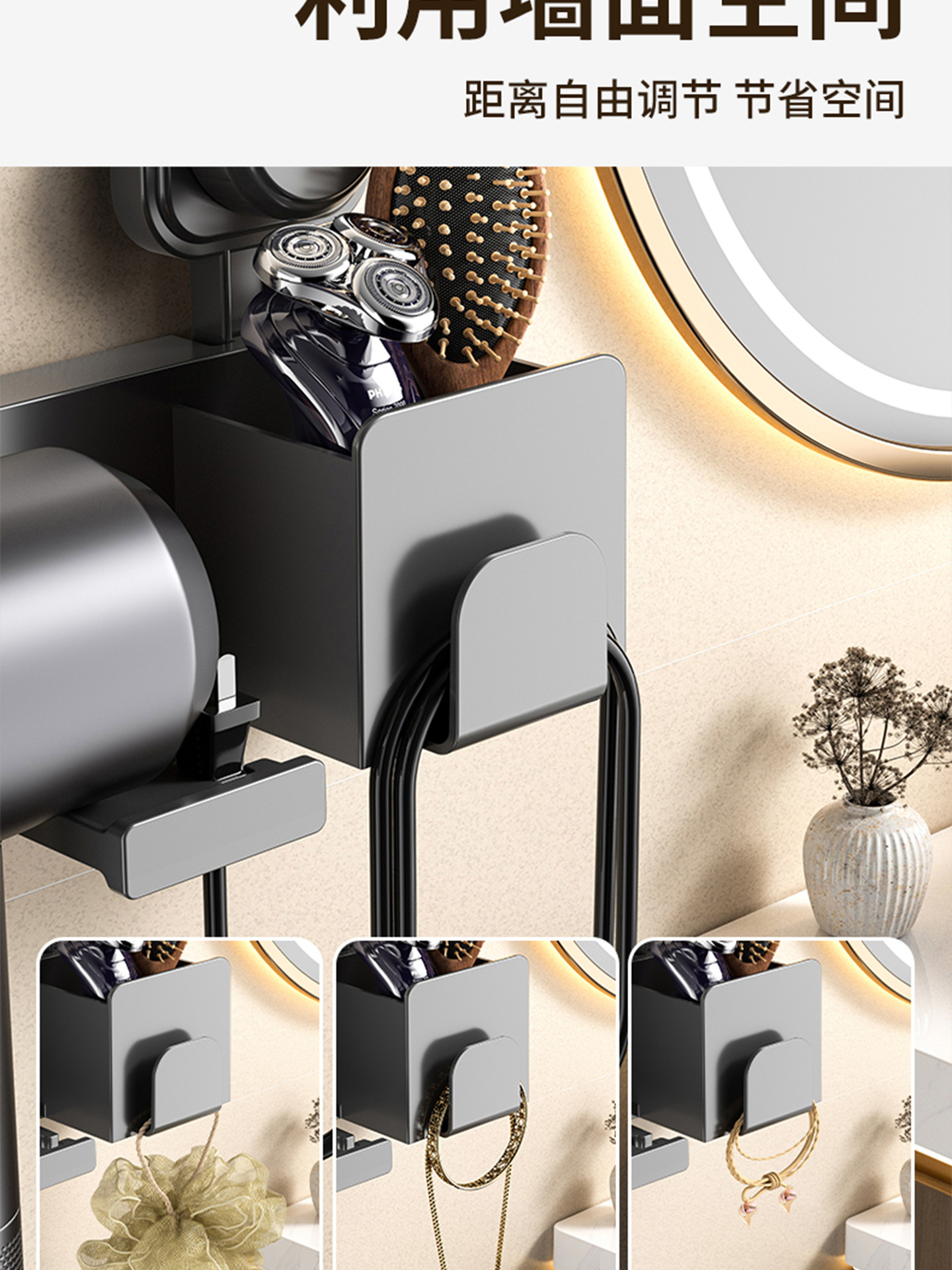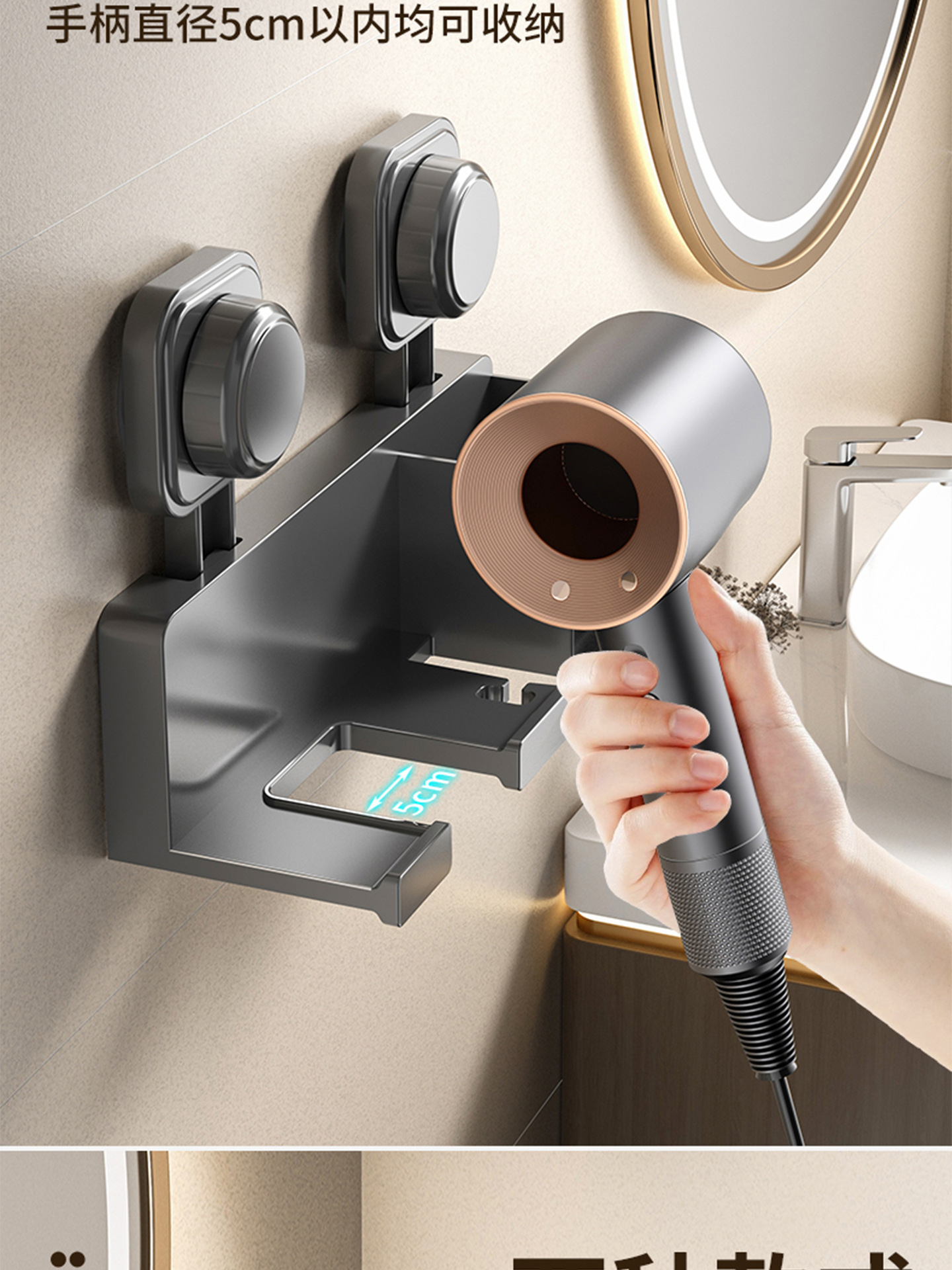枪灰豪华收纳款/吹风机架【吸盘免打孔】