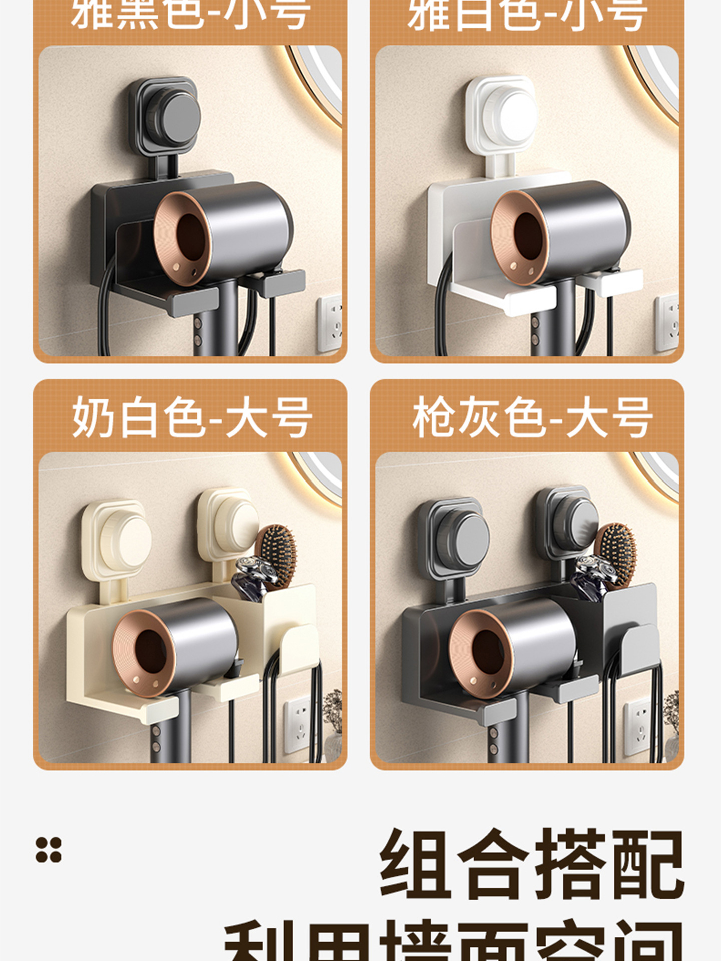 枪灰标准款/吹风机架【吸盘免打孔】