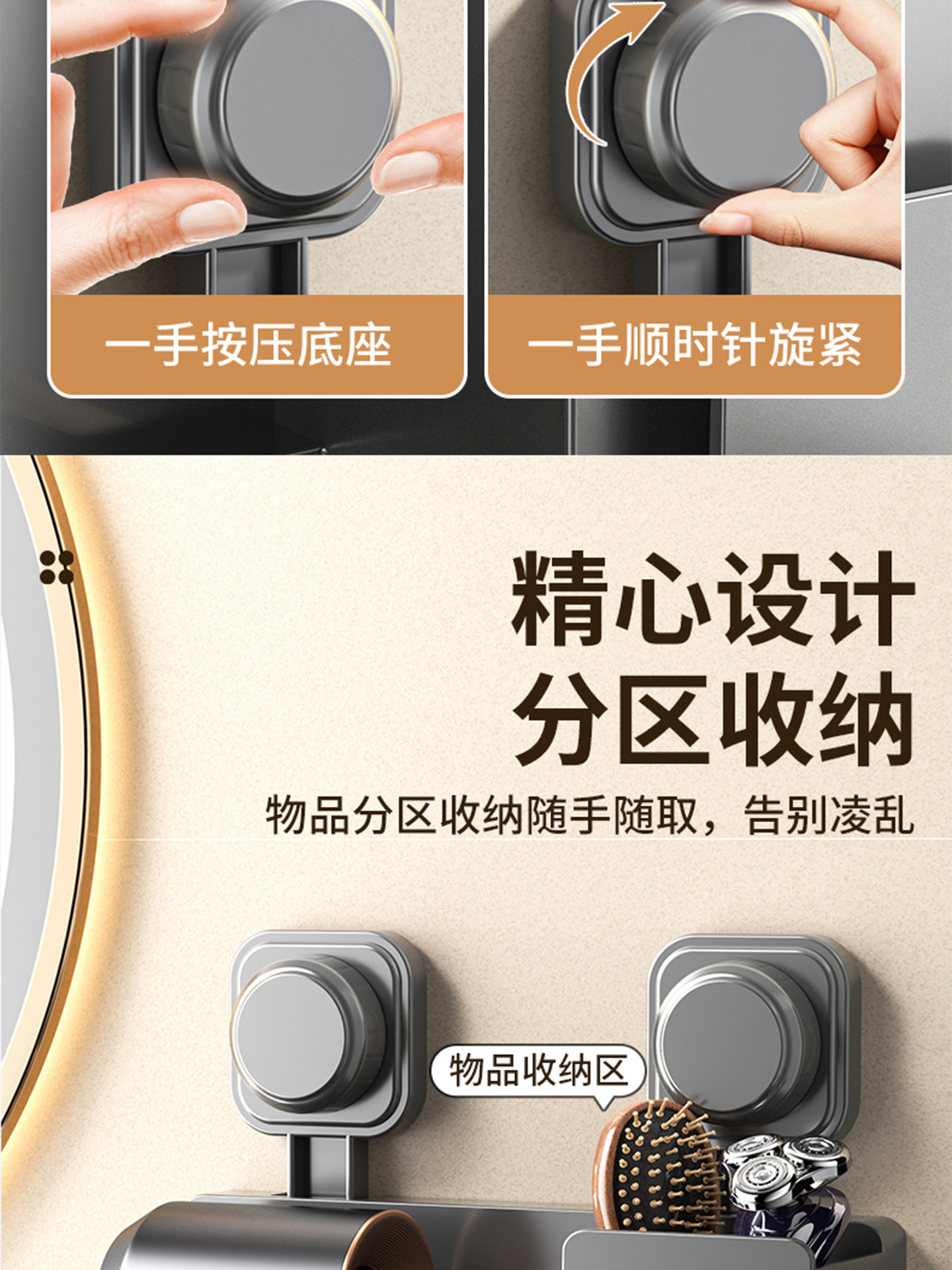奶白豪华收纳款/吹风机架【吸盘免打孔】