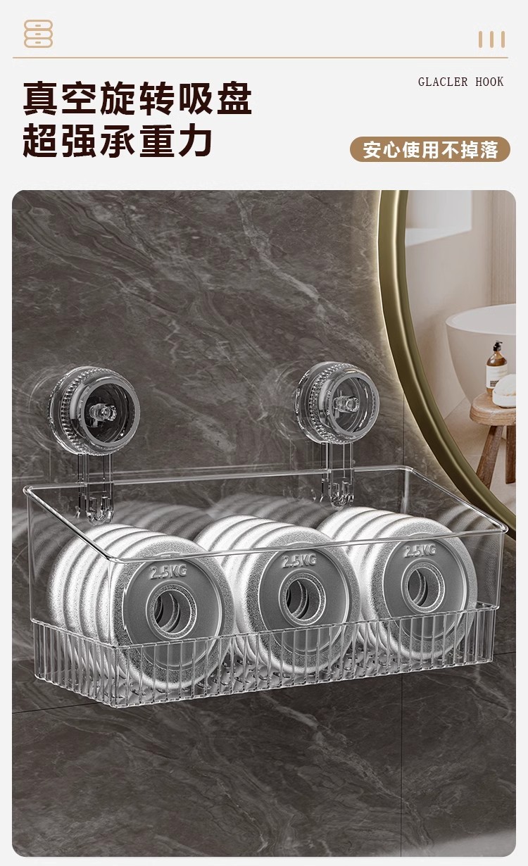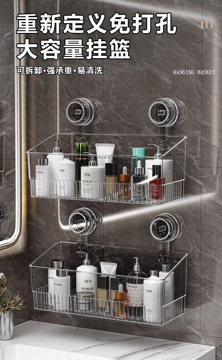 商品名称:吸盘置物架卫生间免打孔浴室厕所洗漱台挂墙上收纳架子壁挂收纳盒
