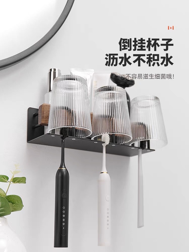 商品名称:免打孔实木收纳玻璃杯壁挂水杯置物架牙刷杯架轻奢架子漱口杯套装