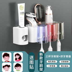 牙刷置物架免打孔牙刷漱口杯挂墙式卫生间壁挂式置物架收纳盒套装