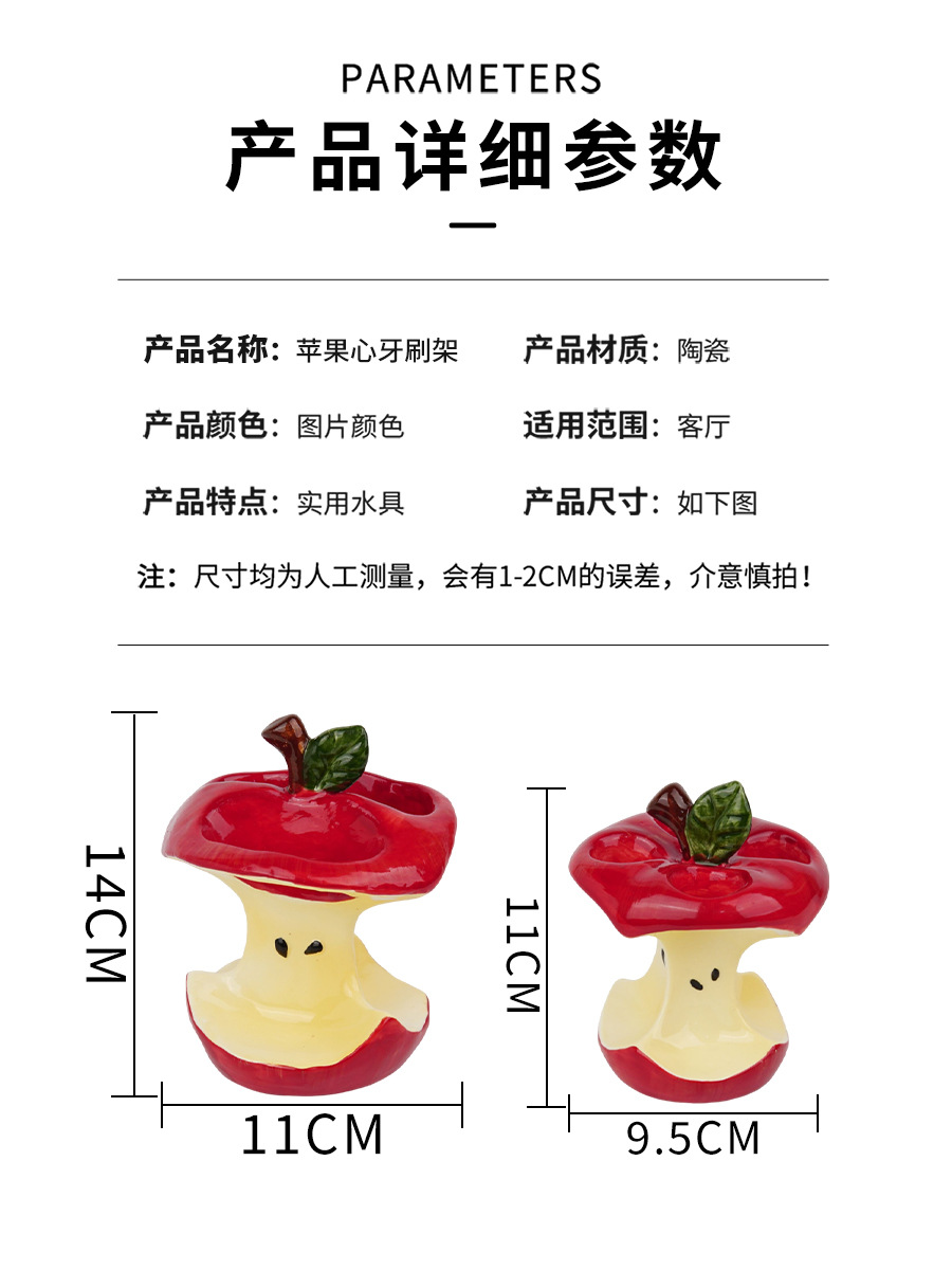 商品名称:高颜值苹果芯牙刷架陶瓷牙刷底座沥水卫生间洗漱台创意卫生间好物