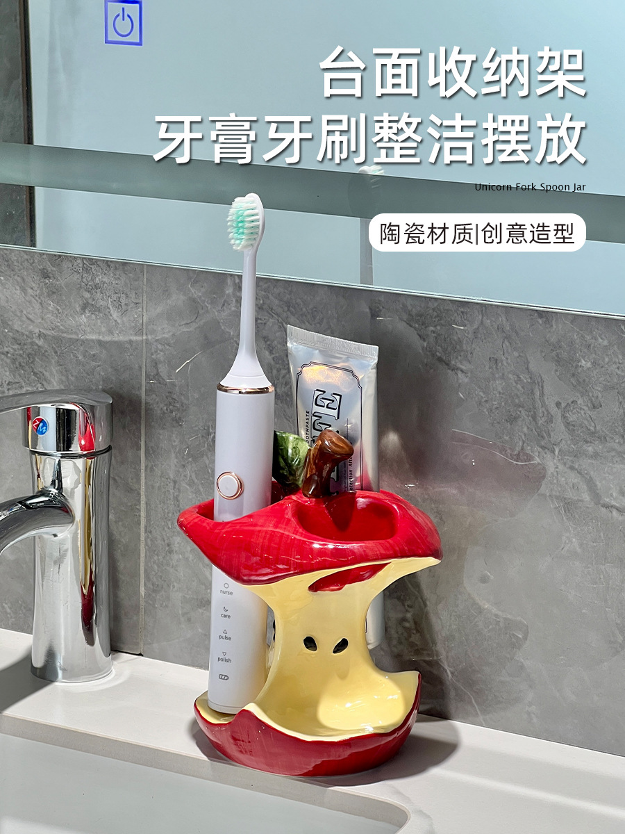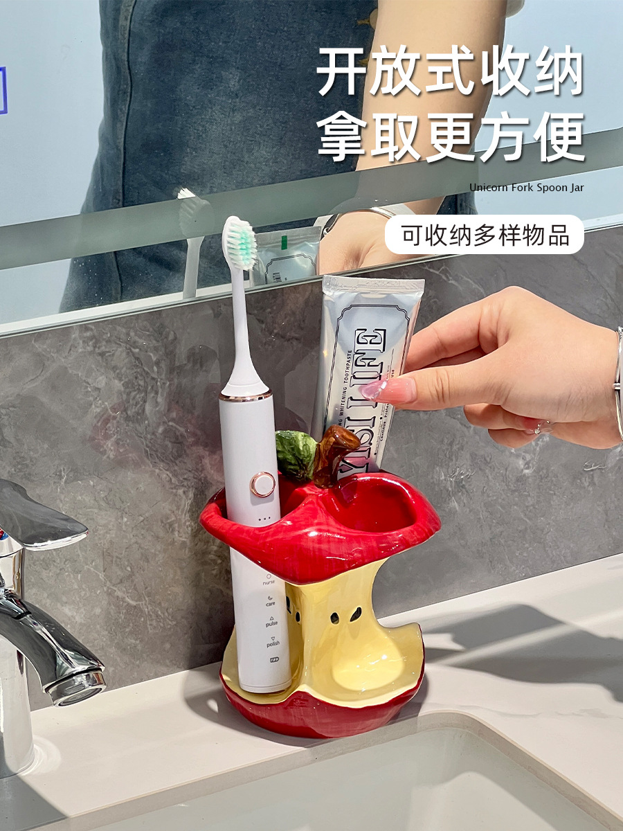 高颜值苹果芯牙刷架陶瓷牙刷底座沥水卫生间洗漱台创意卫生间好物