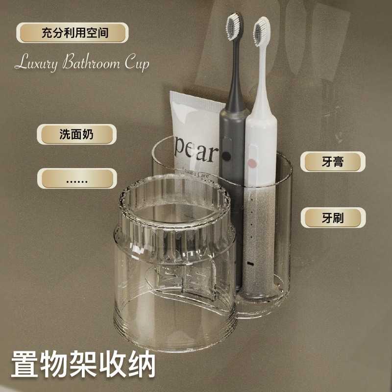 牙刷架漱口杯免打孔置物架牙杯牙刷架刷牙杯卫生间牙刷杯架壁挂式