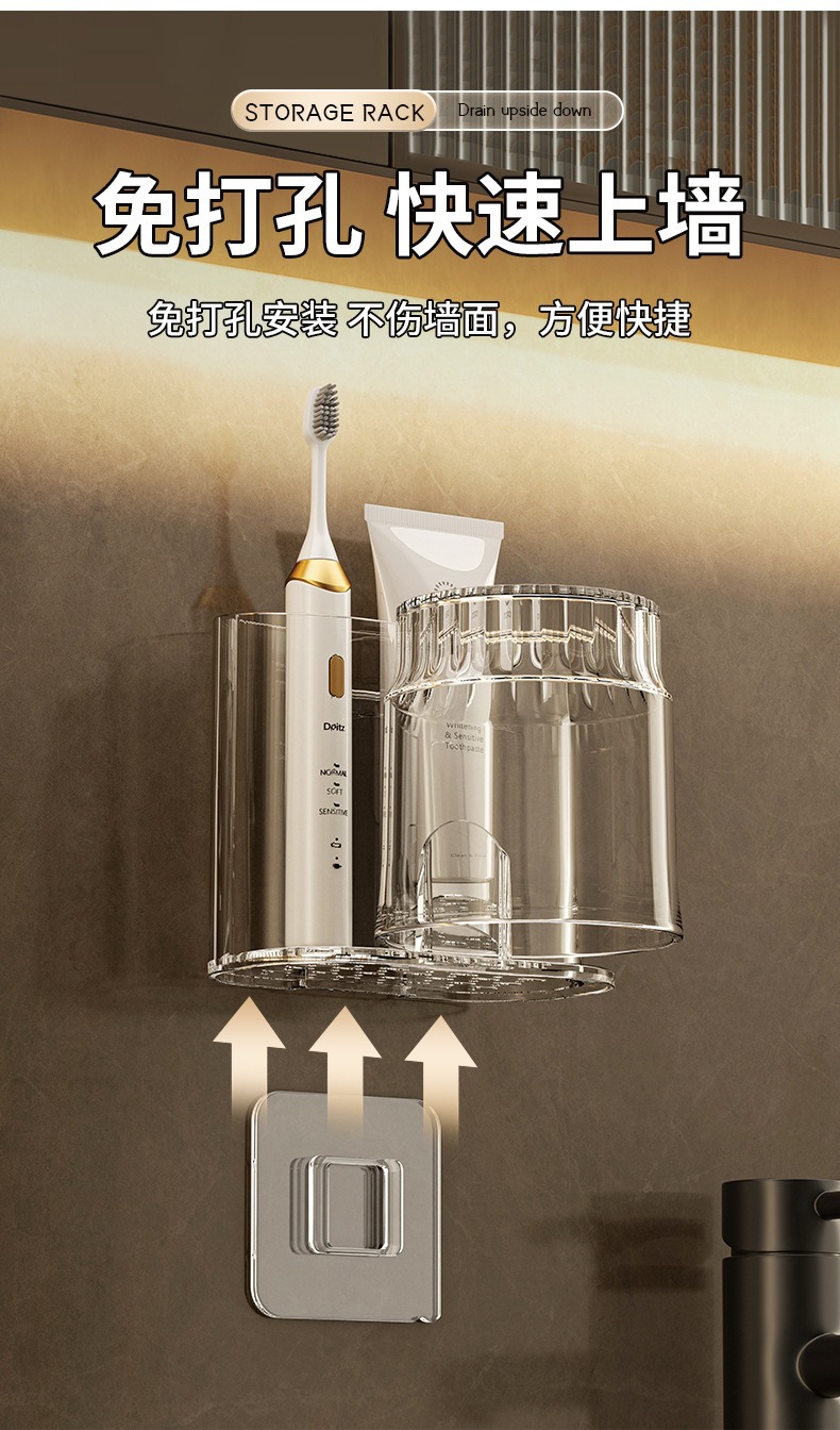 商品名称:牙刷架漱口杯免打孔置物架牙杯牙刷架刷牙杯卫生间牙刷杯架壁挂式