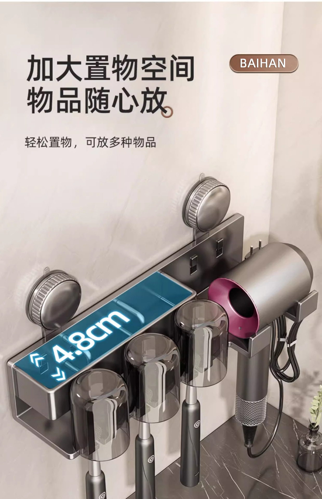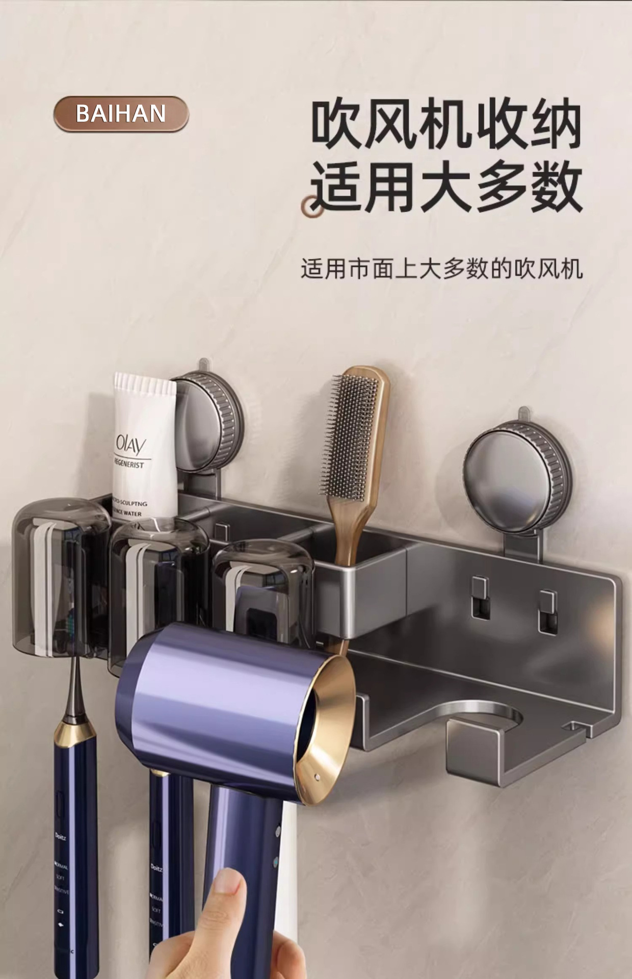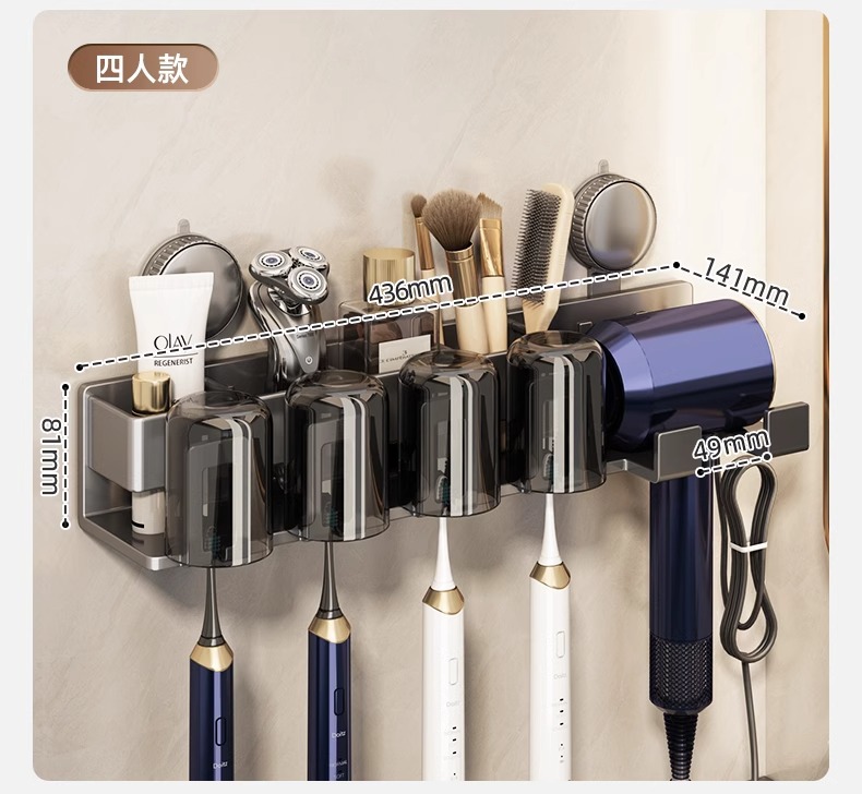 【吸盘秒装】吹风机牙刷一体架-4杯-带彩杯