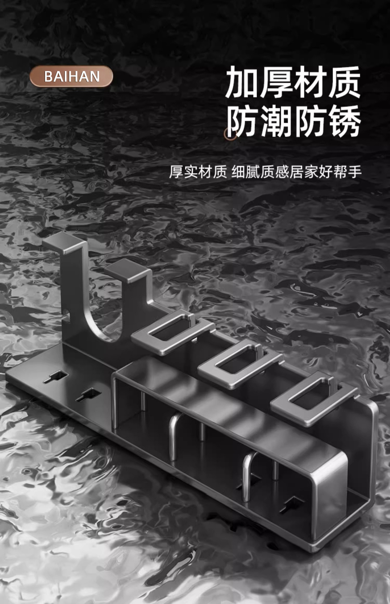 【吸盘秒装】吹风机牙刷一体架-4杯-不带杯