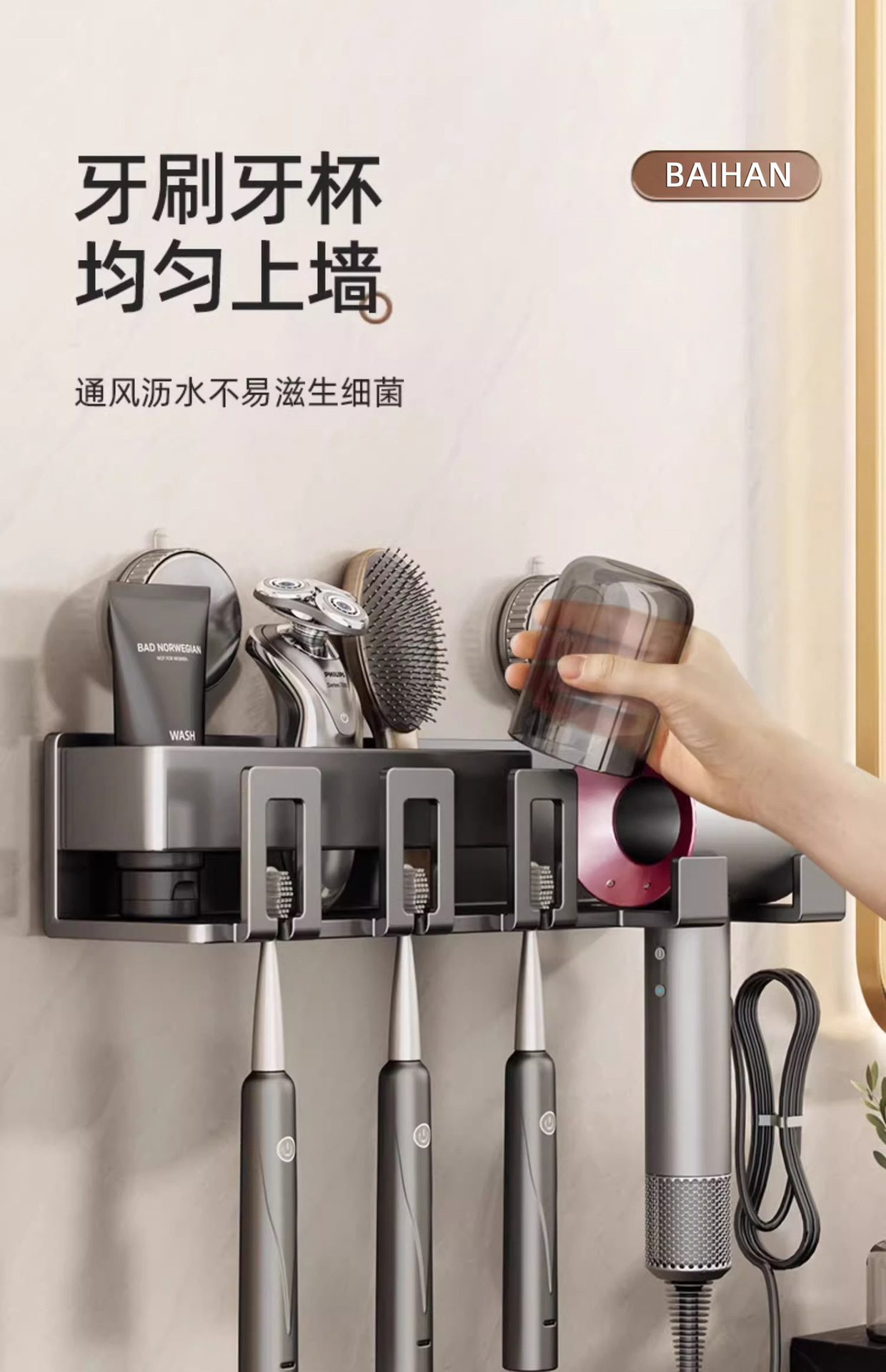 百悍吸盘牙刷置物架免打孔卫生间壁挂式吹风机支架牙杯漱口杯挂架