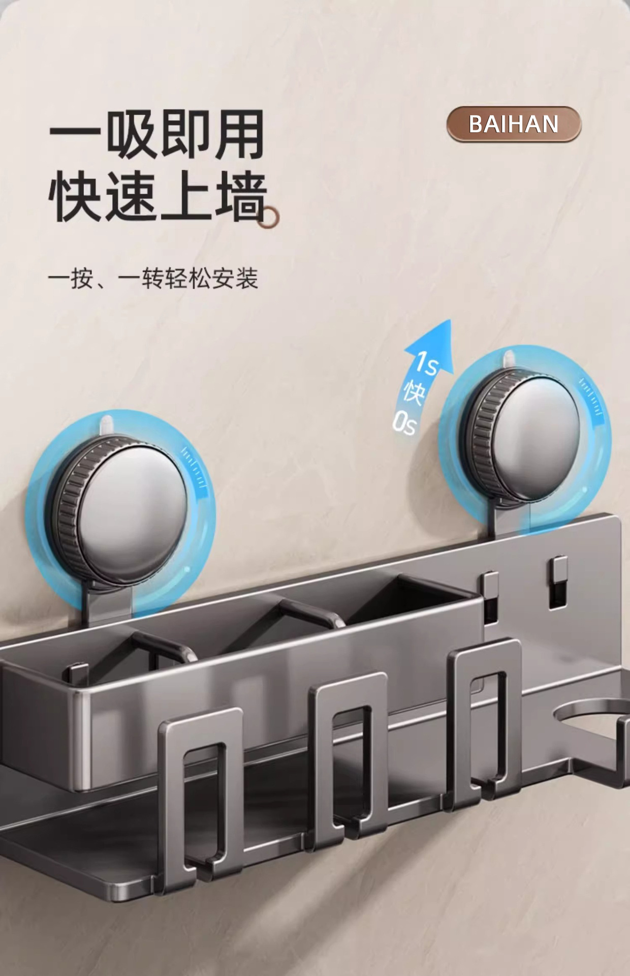 商品名称:百悍吸盘牙刷置物架免打孔卫生间壁挂式吹风机支架牙杯漱口杯挂架