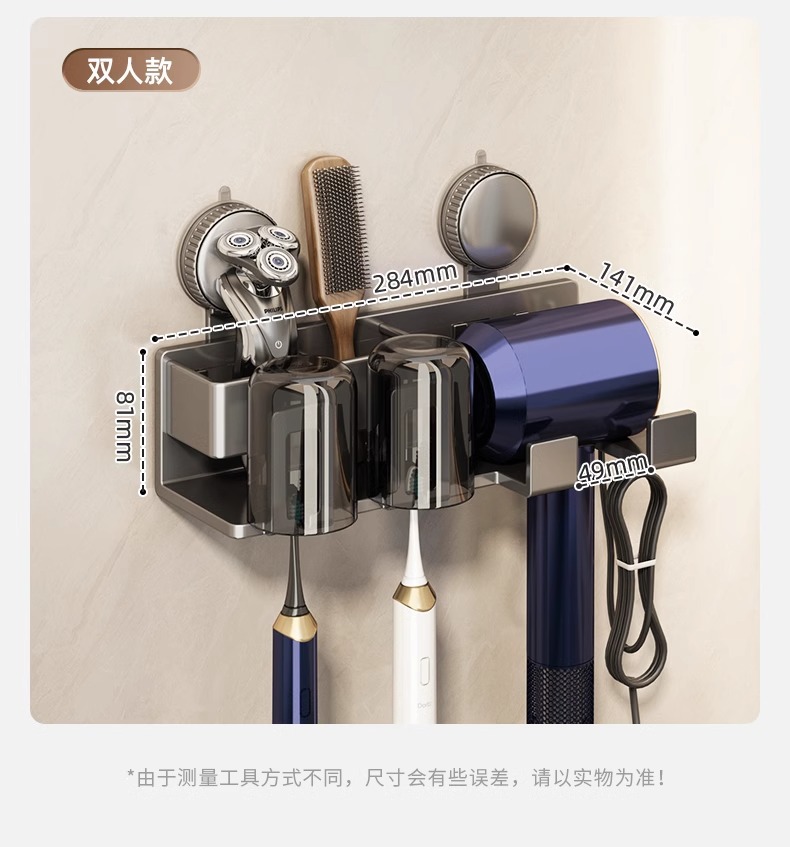 【吸盘秒装】吹风机牙刷一体架-2杯-带彩杯