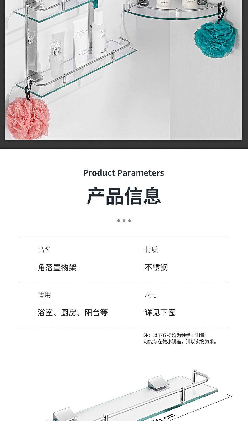 商品名称:不锈钢玻璃镜前置物架卫生间洗漱台壁挂卫浴厕所洗手间浴室收纳架