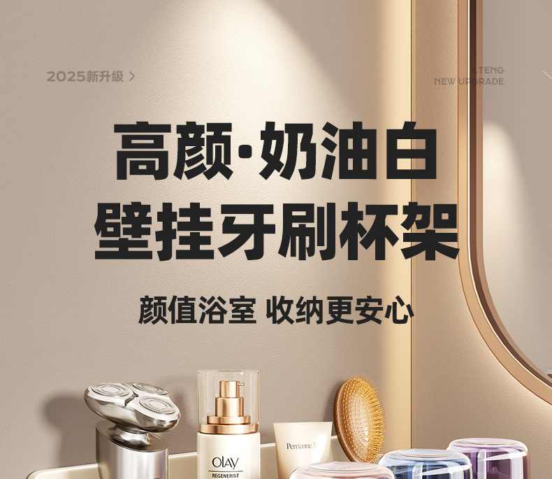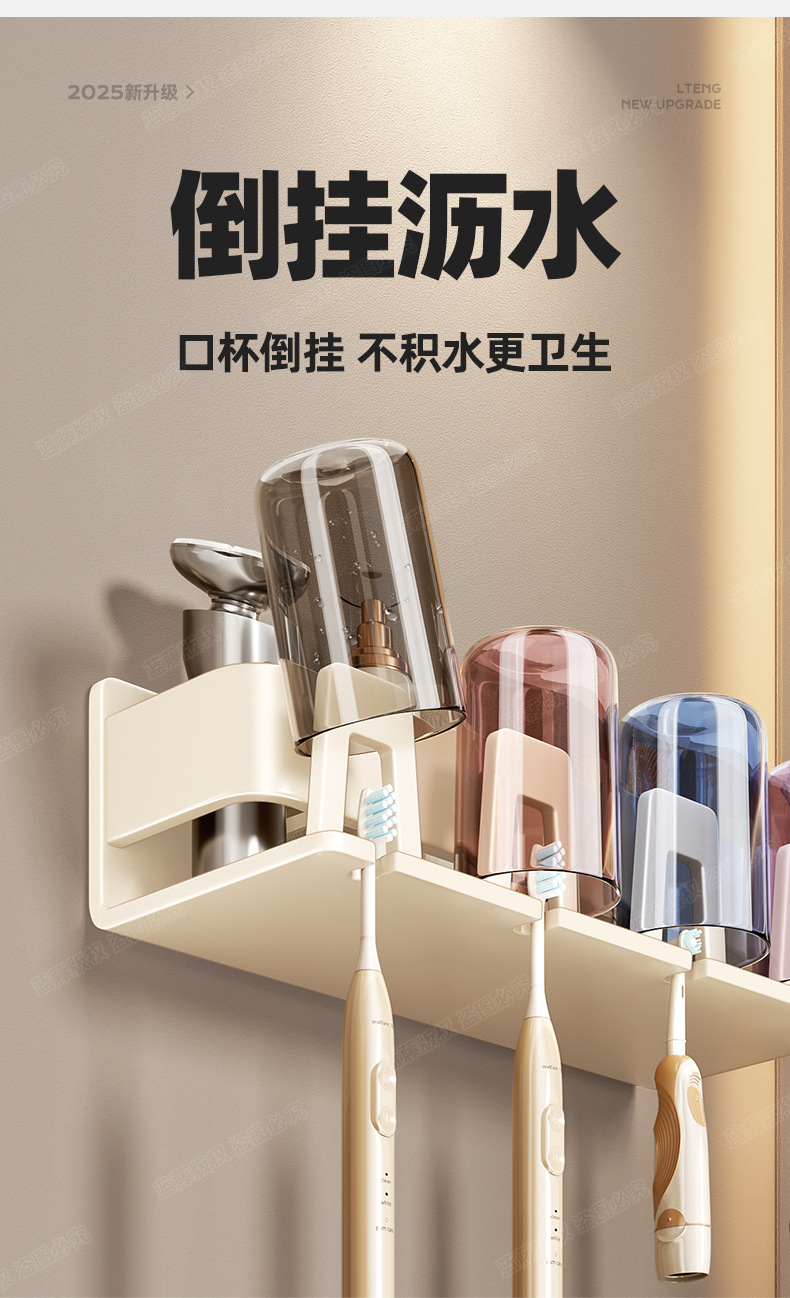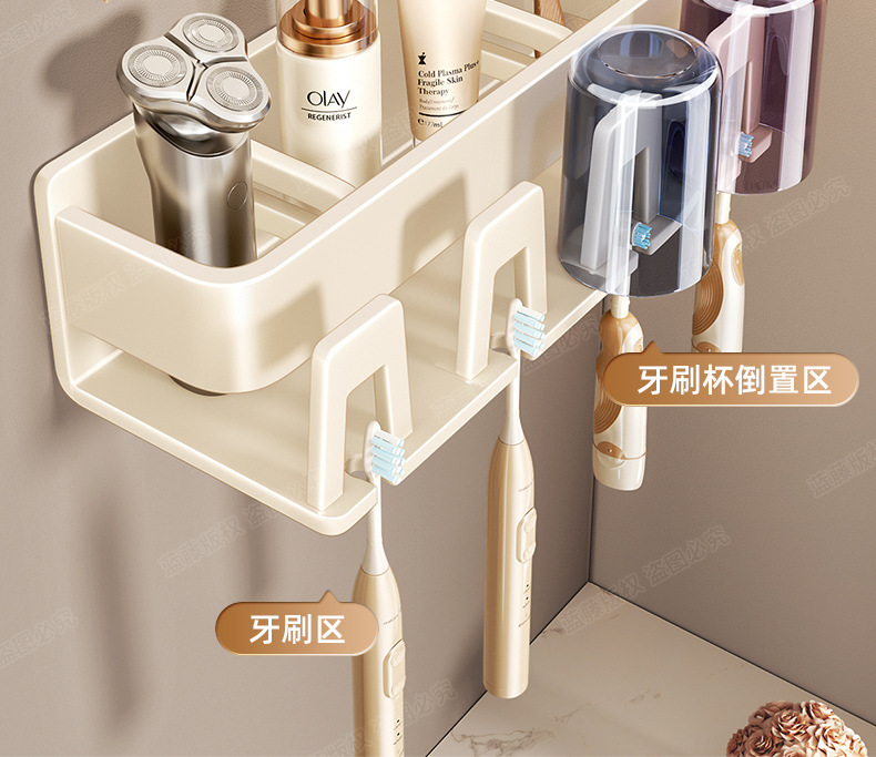 商品名称:浴室牙刷杯架免打孔置物架家用卫生间洗漱台墙上壁挂漱口杯收纳架