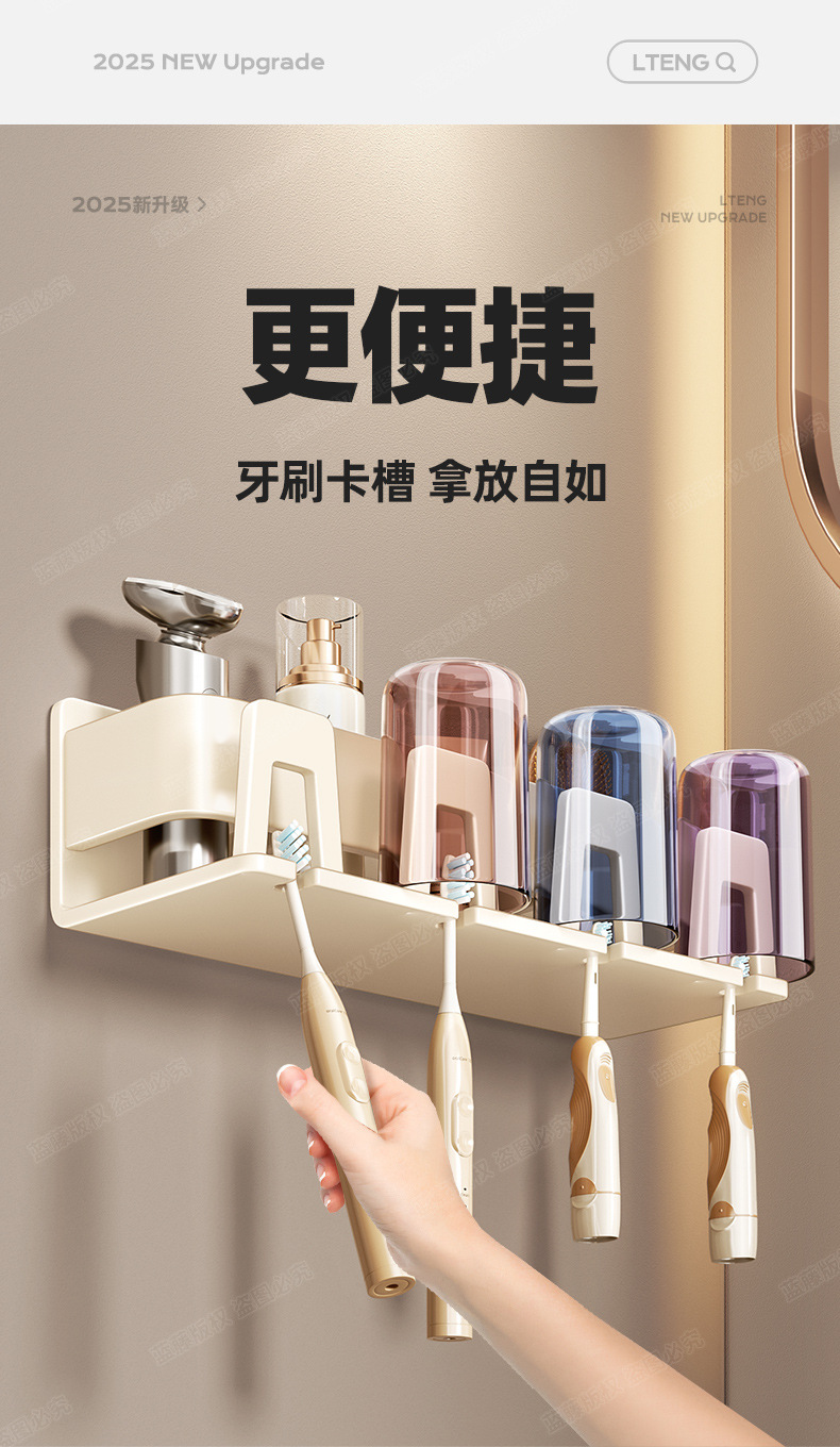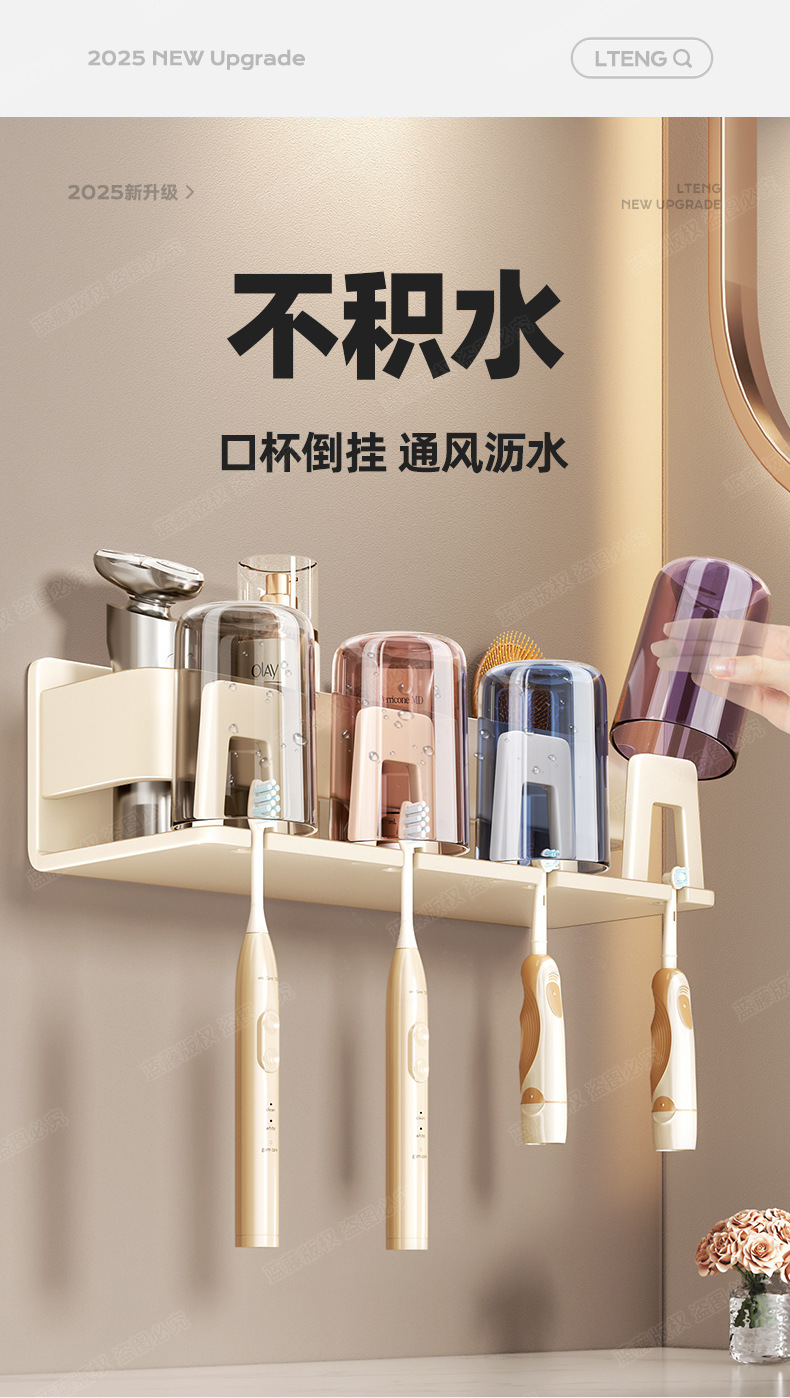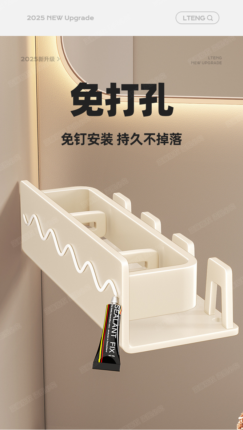 浴室牙刷杯架免打孔置物架家用卫生间洗漱台墙上壁挂漱口杯收纳架