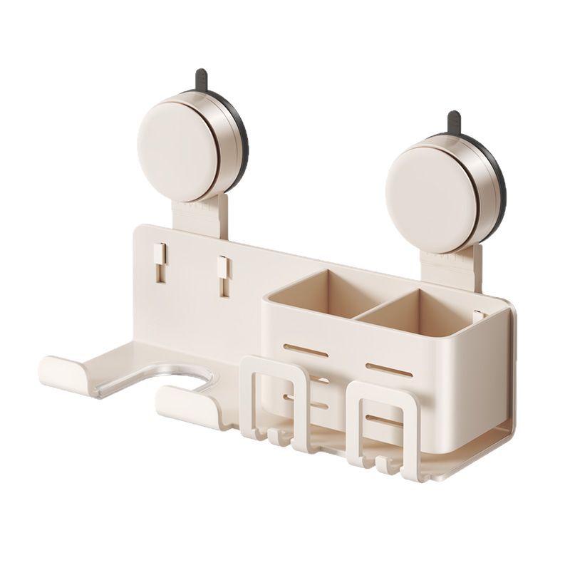 2025新款吸盘奶白吹风机牙刷架四筒带杯-37055