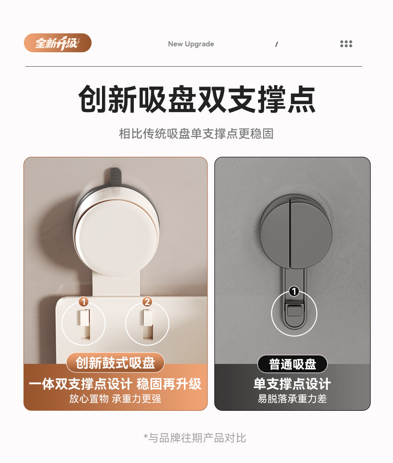 2025新款吸盘奶白吹风机牙刷架三筒不带杯-37000
