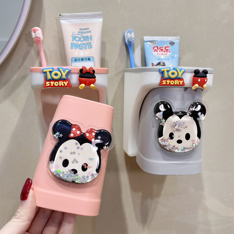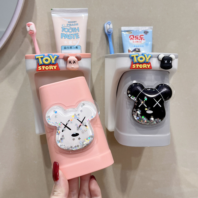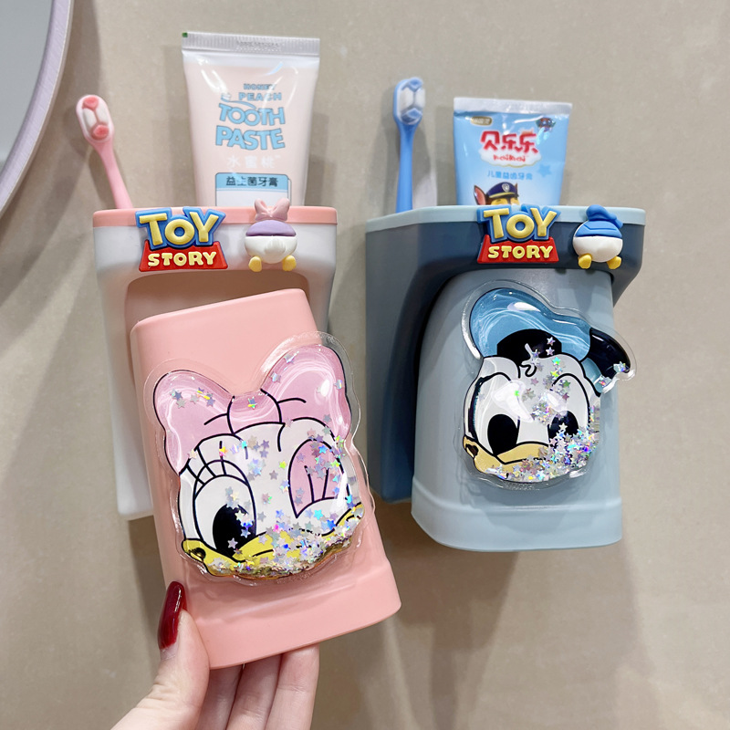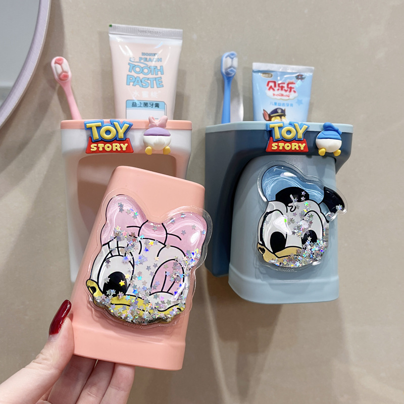 儿童牙刷置物架儿童漱口杯壁挂式可爱创意流沙牙杯牙刷架牙杯情侣