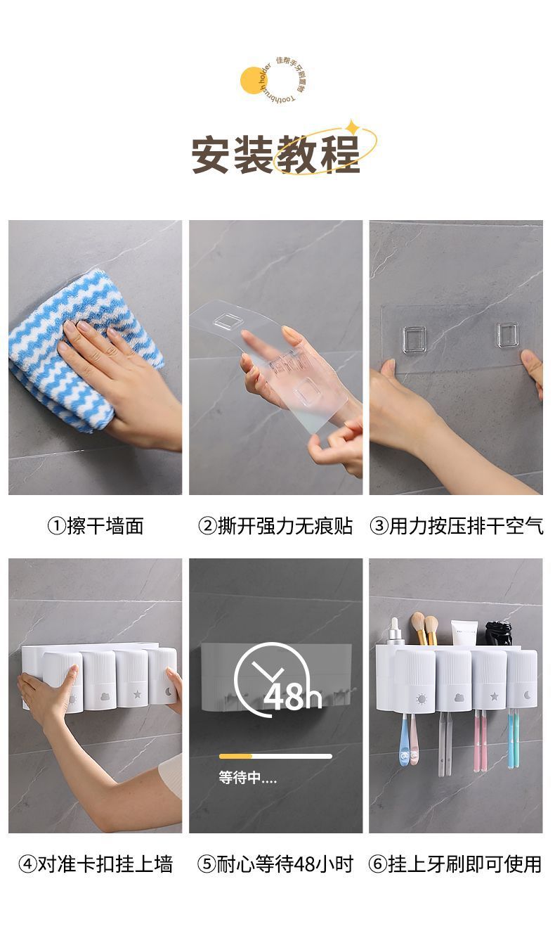 商品名称:牙刷置物架免打孔漱口杯刷牙杯卫生间牙刷杯