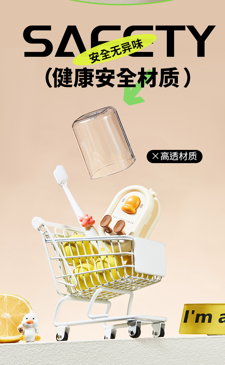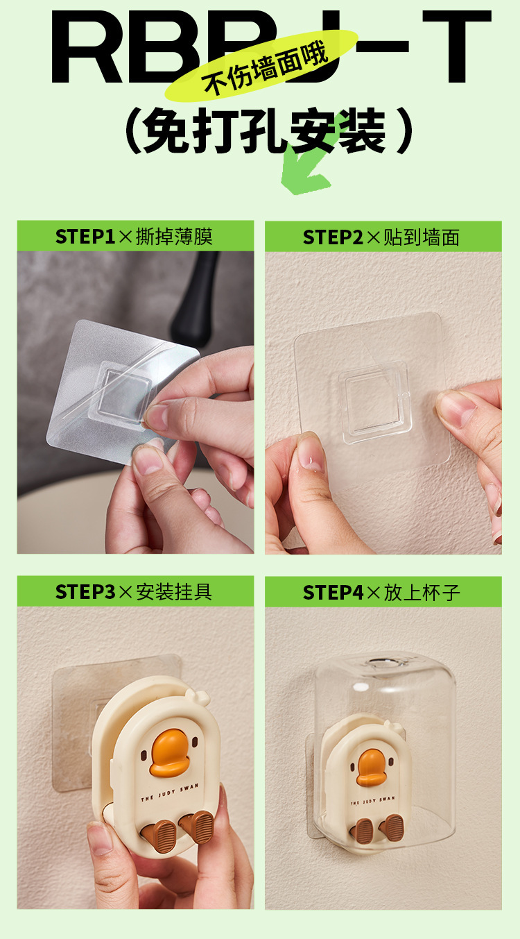 商品名称:可爱儿童浴室洗漱套装洗漱架壁挂免打孔电动牙刷挂架漱口杯置物架
