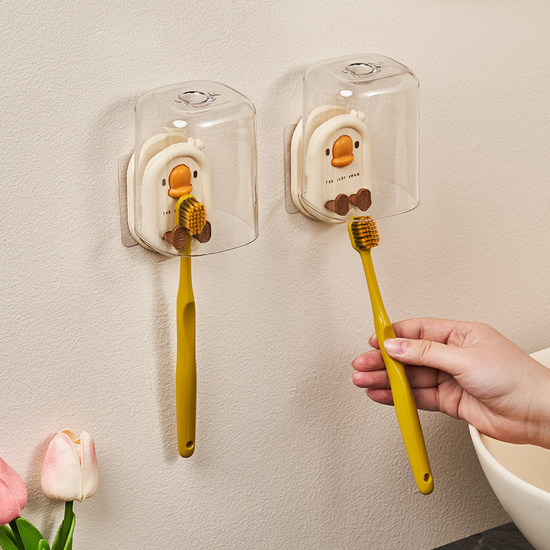可爱儿童浴室洗漱套装洗漱架壁挂免打孔电动牙刷挂架漱口杯置物架