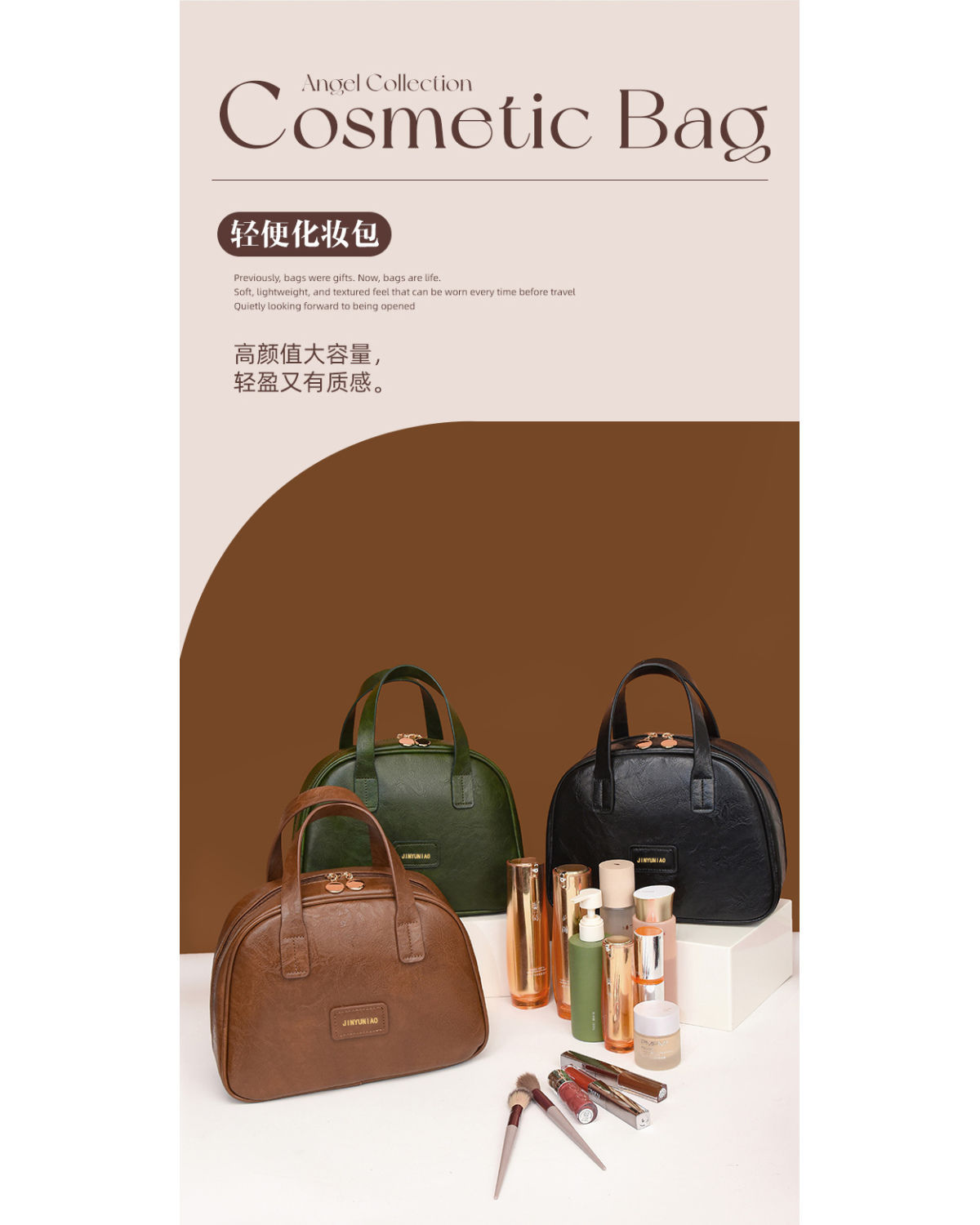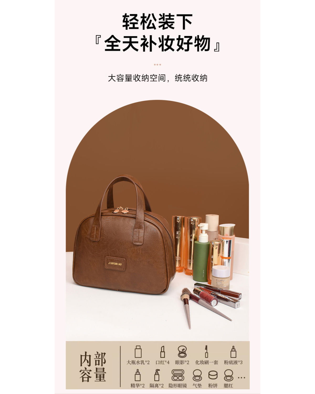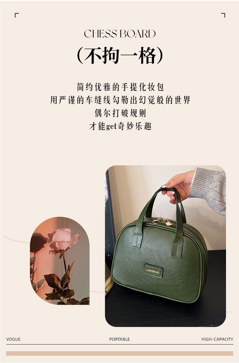 商品名称:2025新款油蜡皮复古化妆包女大容量时尚高级感便携旅行护肤收纳包