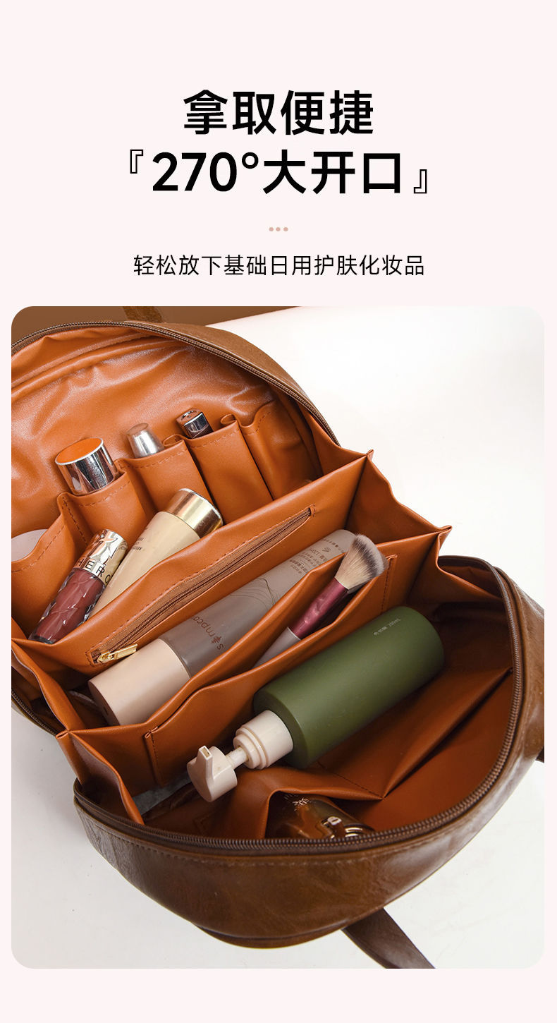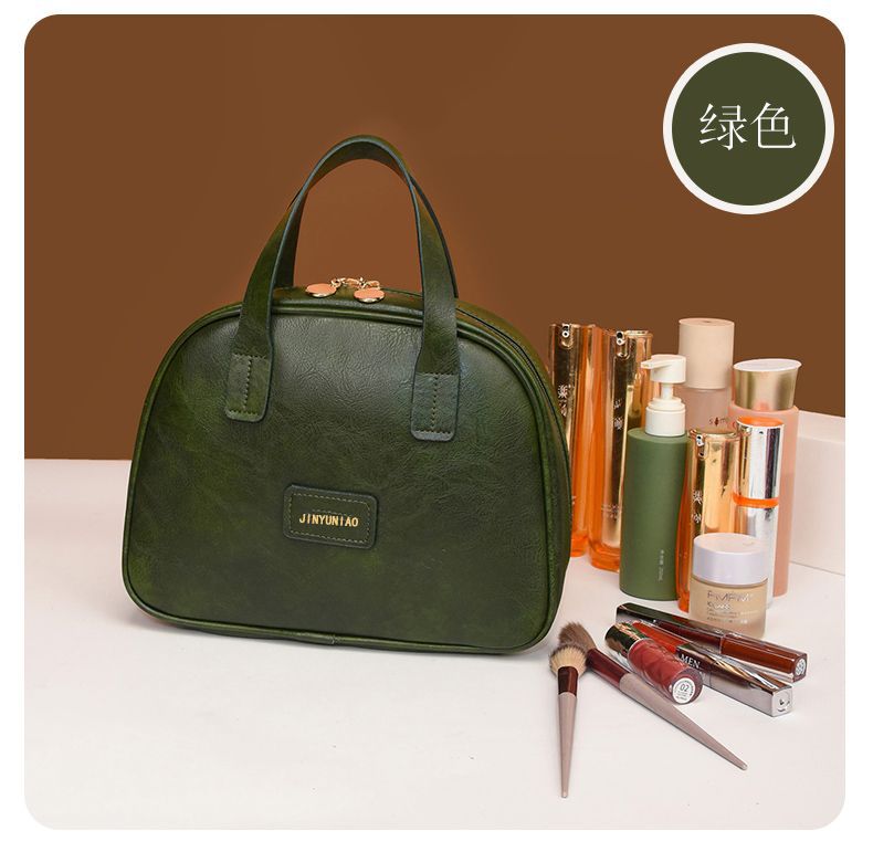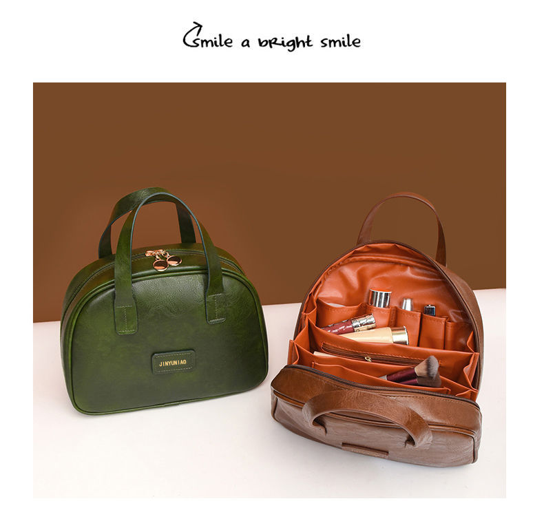 2025新款油蜡皮复古化妆包女大容量时尚高级感便携旅行护肤收纳包