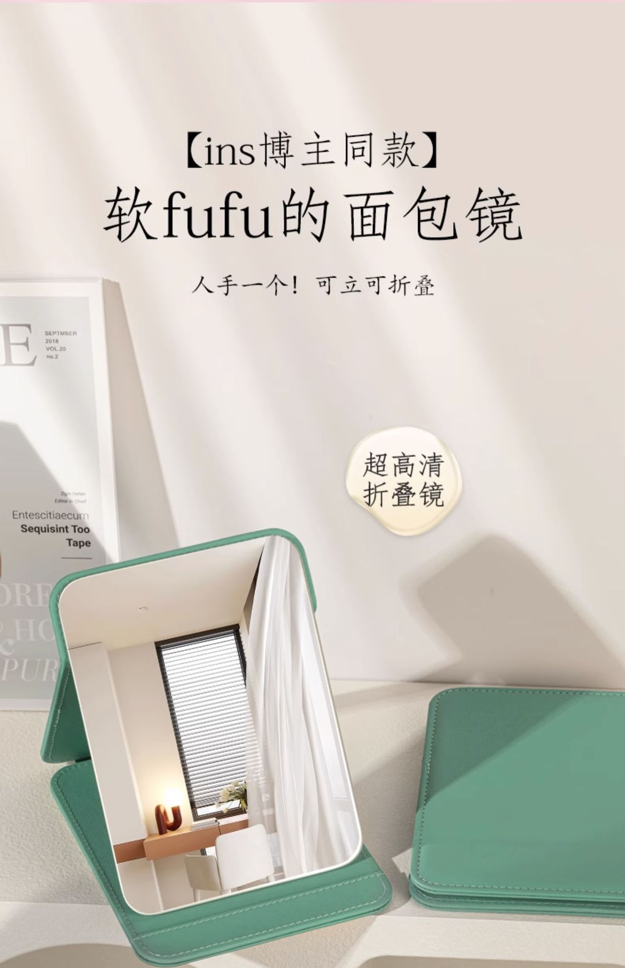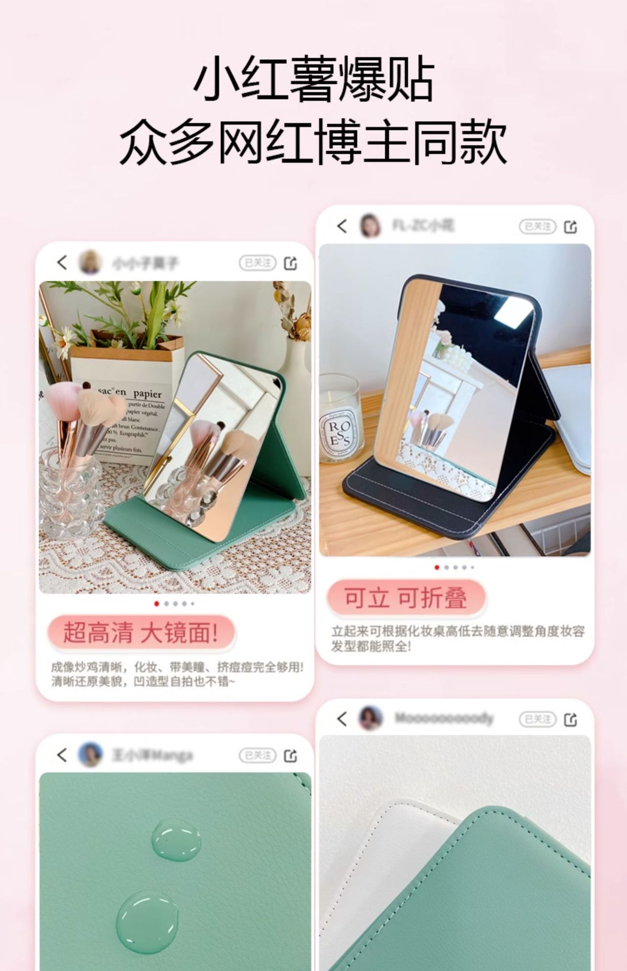镜子化妆镜便携家用女随身小梳妆镜台式桌面折叠学生宿舍卧室男士