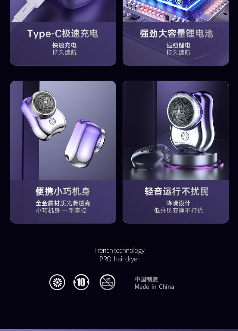 商品名称:迷你电动剃须刀男士电动便携式可充电全自动刮胡刀车载礼品