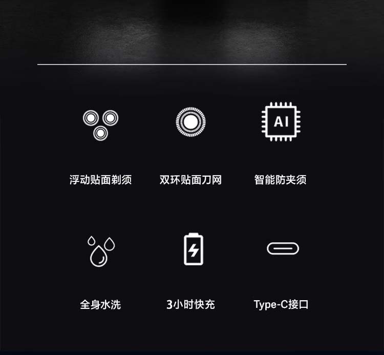 飞科子品牌博锐PS197【全身水洗*Type-C接口*鬓角刀头】