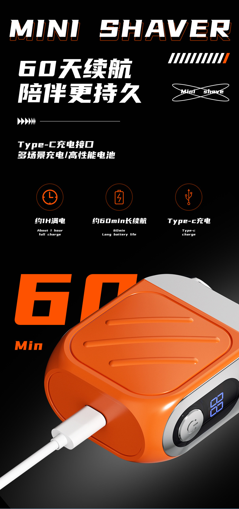 商品名称:抖音同款电动刮胡刀磁吸男士MINI剃须刀电动送男友礼物充电款剃须
