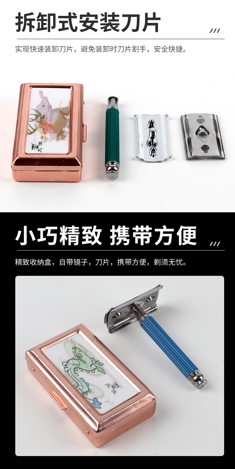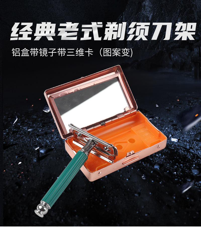 商品名称:天使牌金属盒刀架双面刀片刮胡刀老式剃须刀架铝盒手动刮胡刀