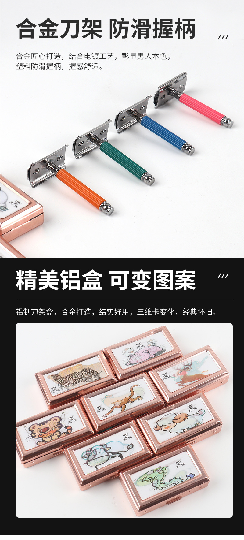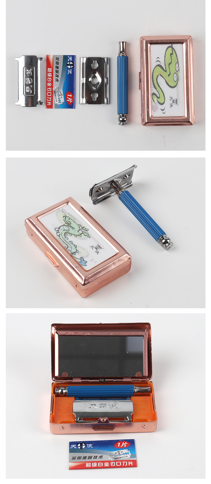 天使牌金属盒刀架双面刀片刮胡刀老式剃须刀架铝盒手动刮胡刀