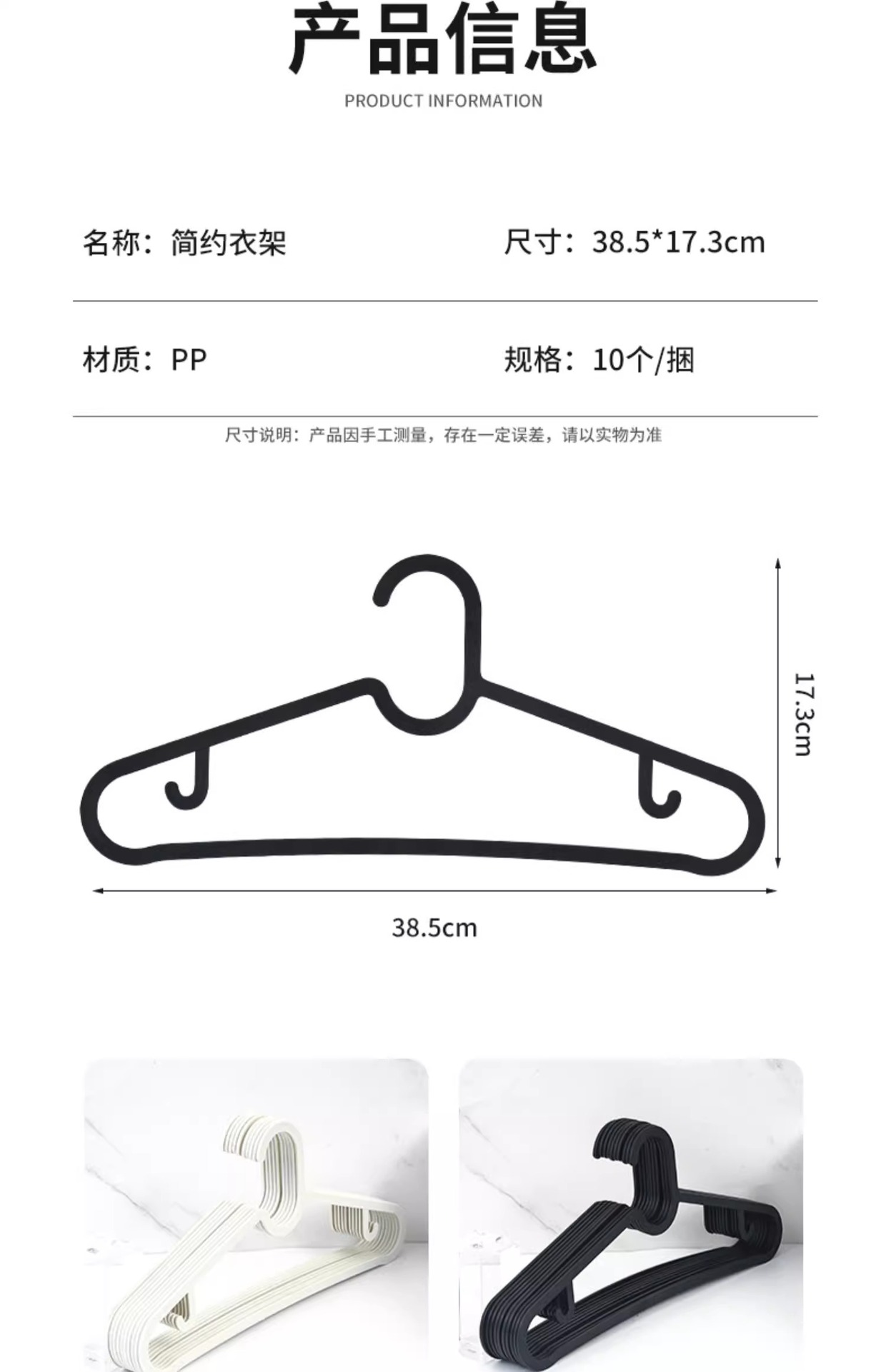 商品名称:10个装【新人到手0.01】衣架家用衣撑撑子晾衣服架无痕晒挂衣架子