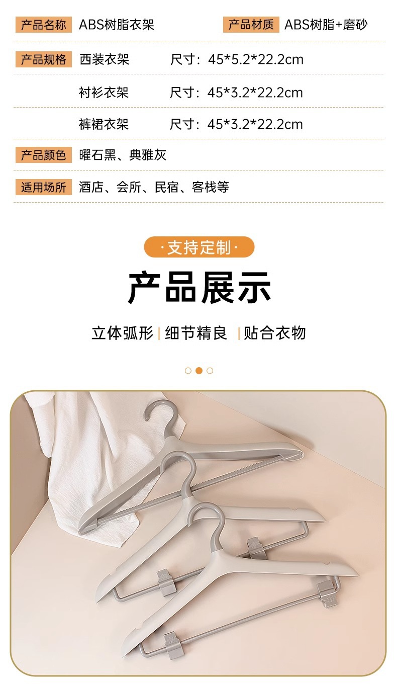 商品名称:洲际酒店同款西装架宾馆客房衣架塑料ABS无痕防滑五星级酒店专用