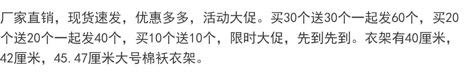 商品名称:加粗加厚成人衣架加长大人衣架挂撑家用晾晒冬天衣服架大衣挂