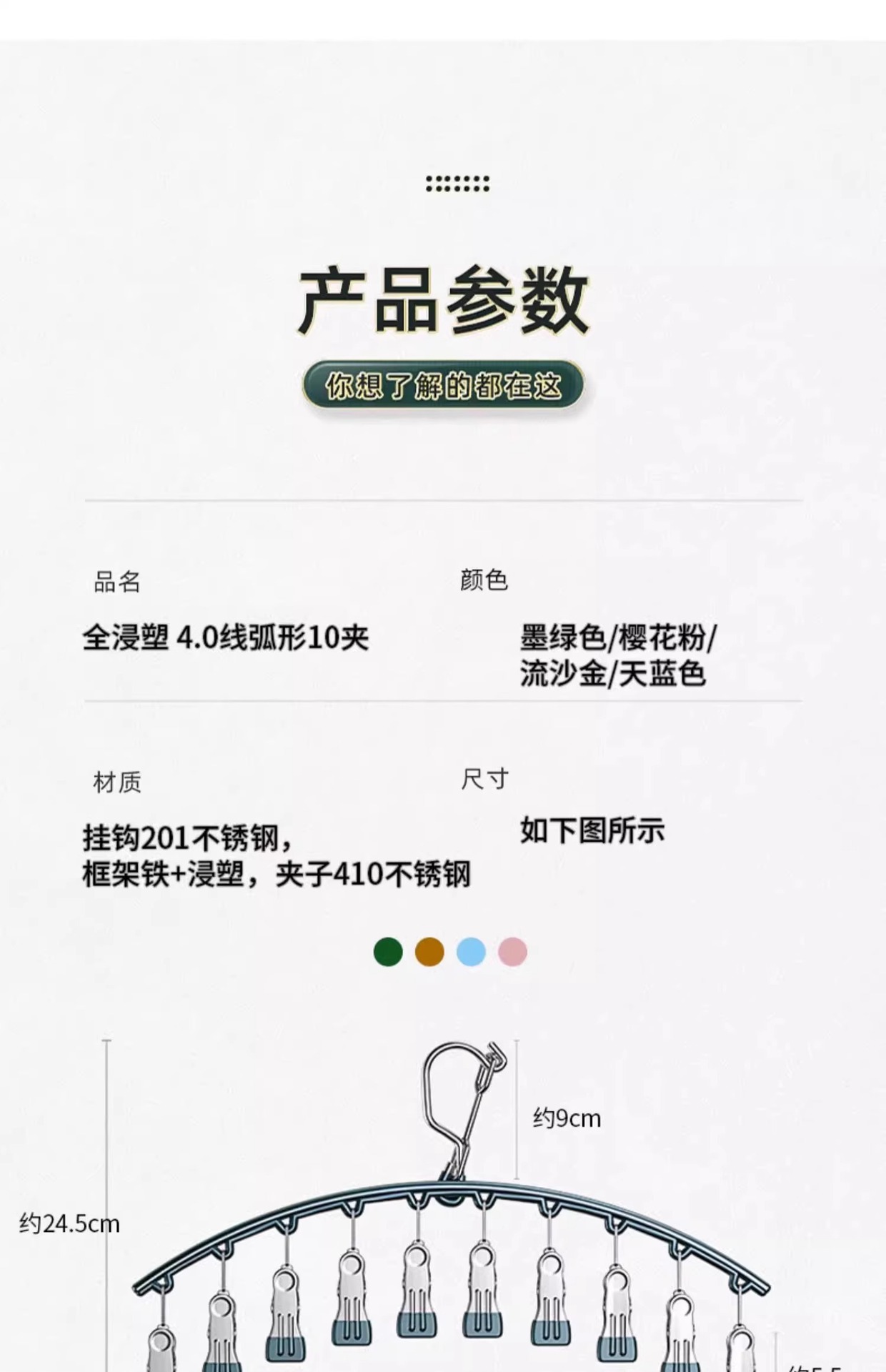 商品名称:袜子晾晒架多夹子晾衣夹防风晒袜子神器不锈钢家用多功能无痕衣架