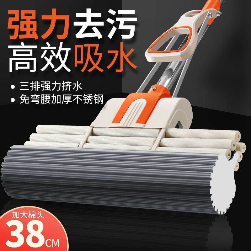 免手洗胶棉拖把海绵拖把吸水滚轮拖布家用挤水拖把海绵吸水拖把