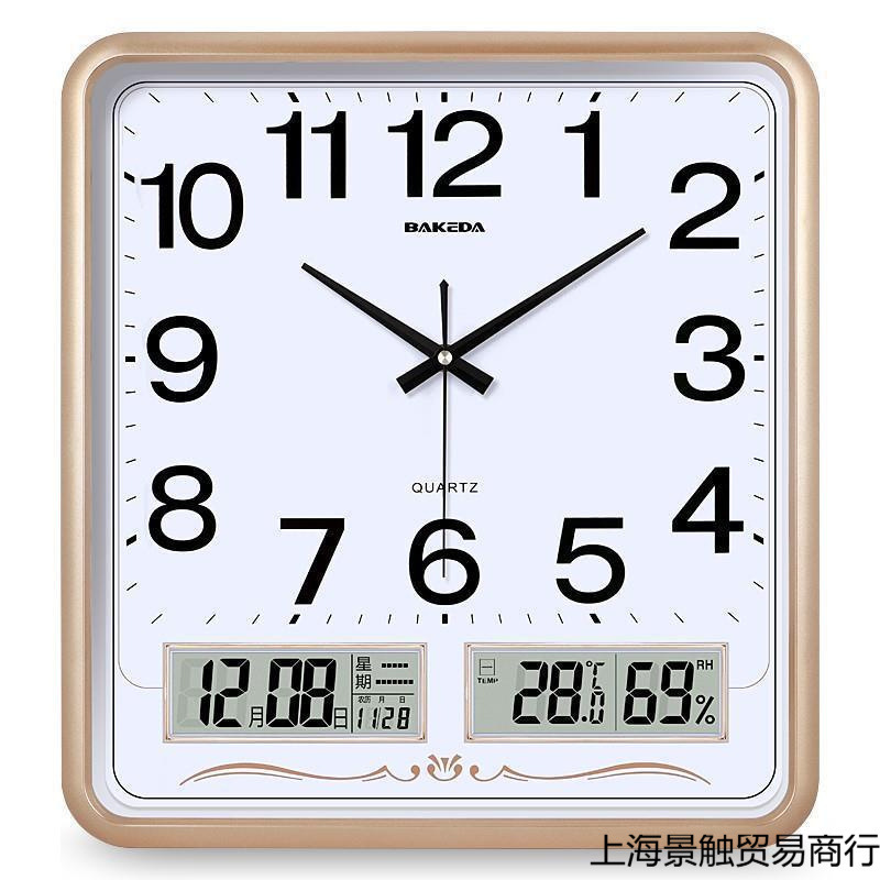 表家用方形挂钟客厅钟表静音挂墙约时尚电子日历时钟石英钟表