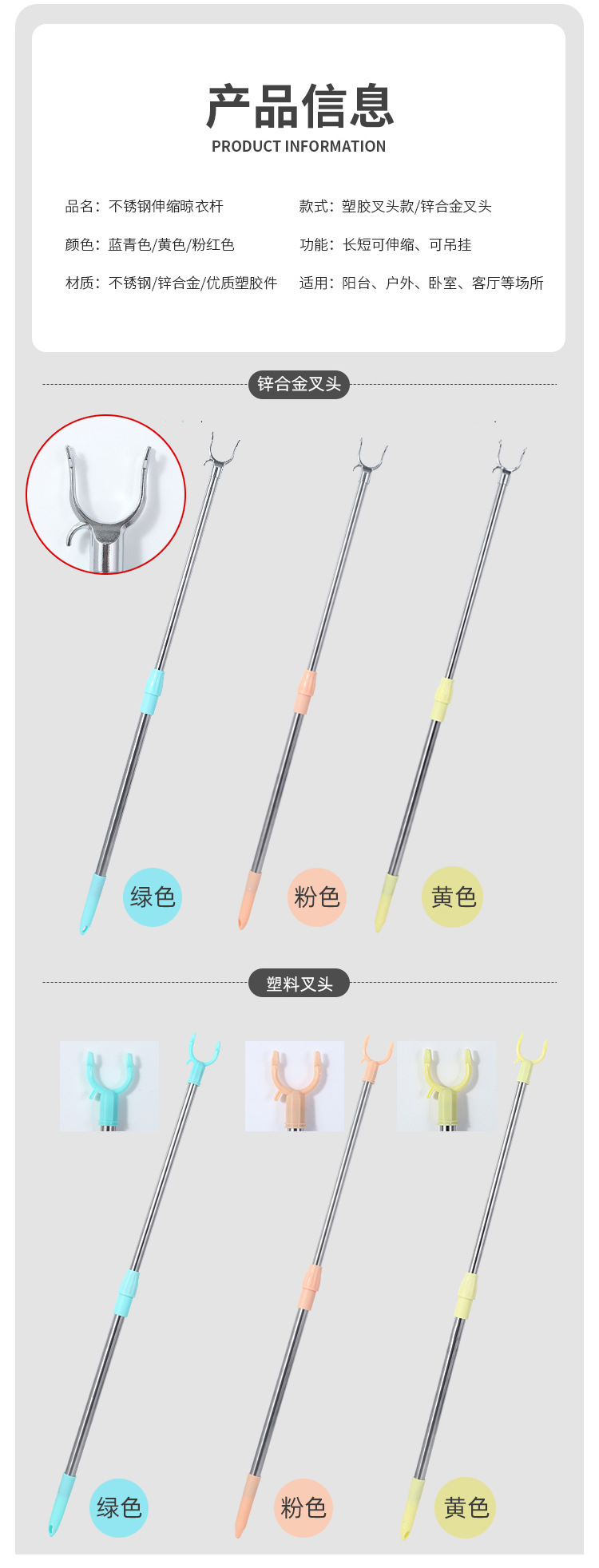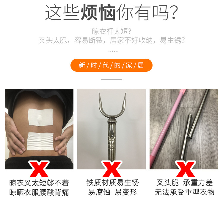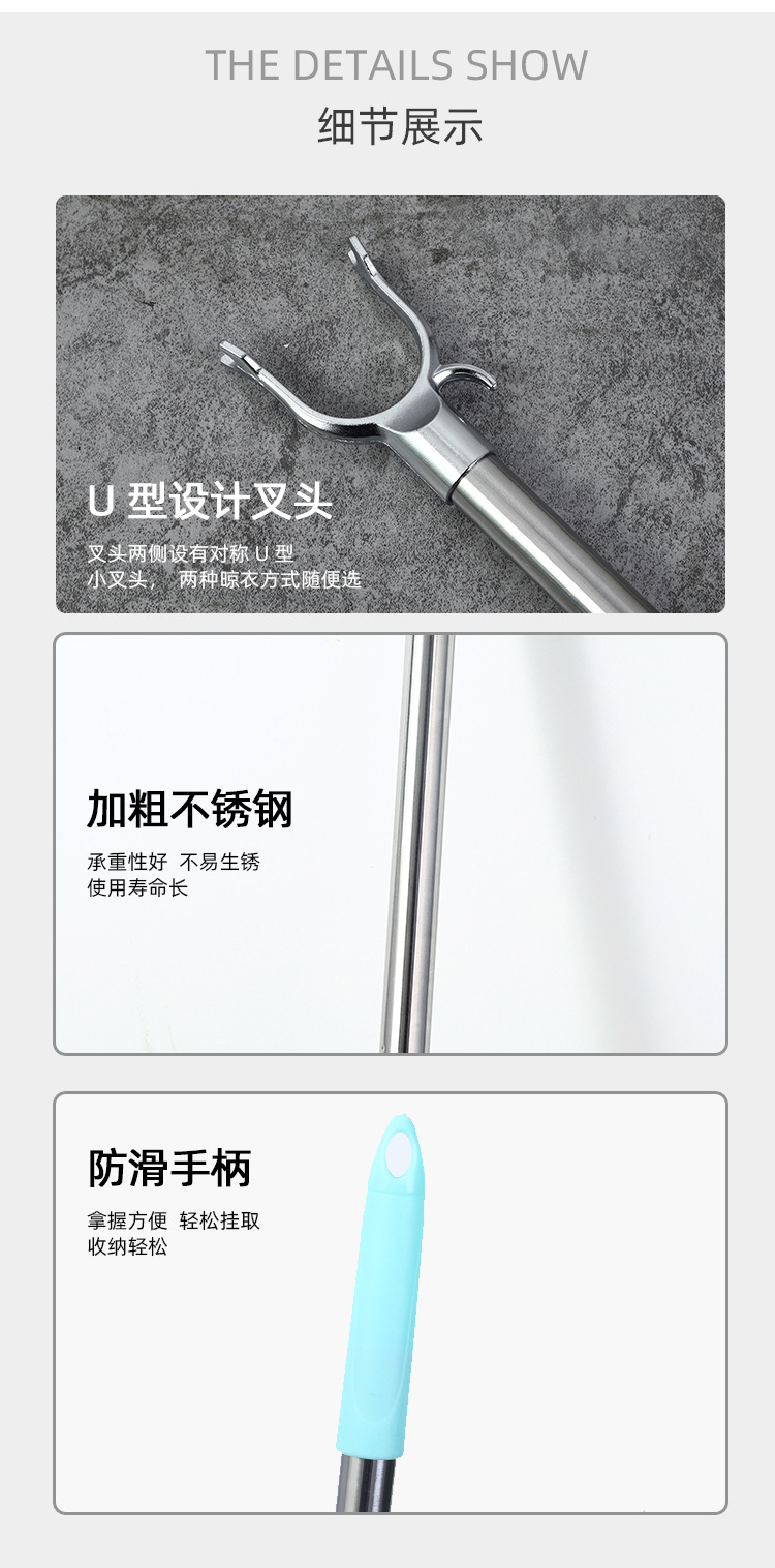 商品名称:晾衣叉不锈钢可自由伸缩调节单杆一根晾衣叉家用阳台晾衣创意晾衣