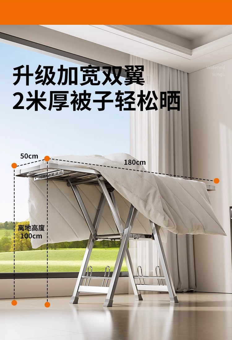 康宸折叠晾衣架落地家用阳台不锈钢晒衣架室内晾衣杆凉晒被子神器