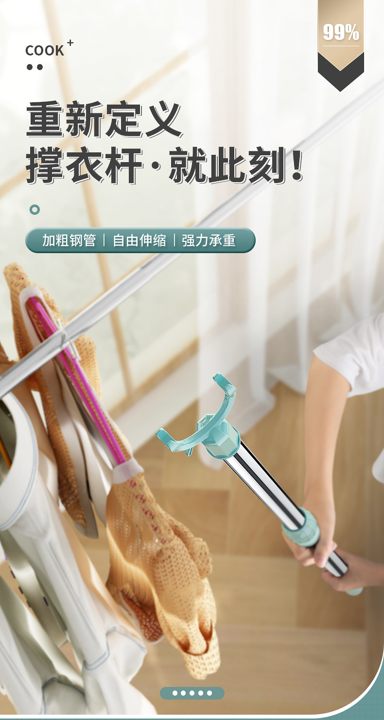 商品名称:可伸缩晾衣杆耐用铝合金衣叉撑衣杆家用阳台晾衣叉子出租屋晾晒