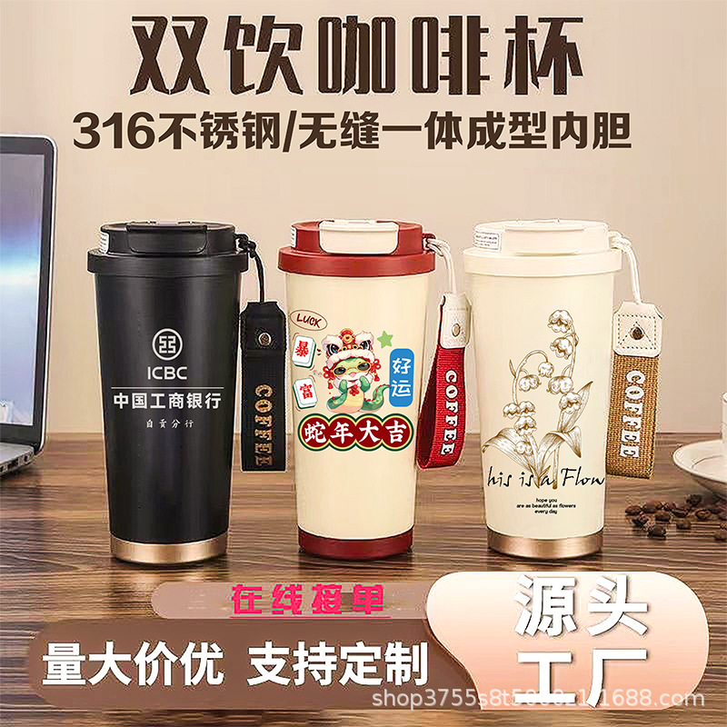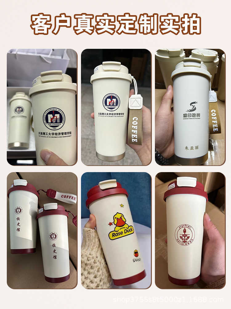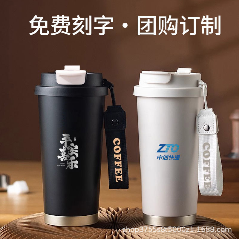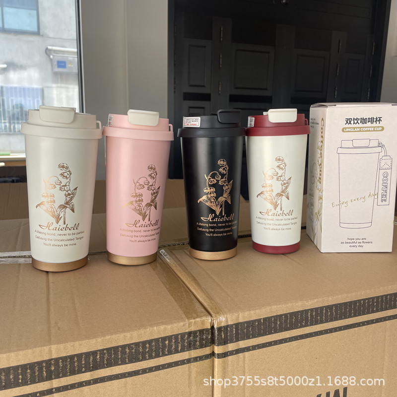 新款美式304不锈钢保温杯车载便携随手杯铃兰花时尚带提绳咖啡杯