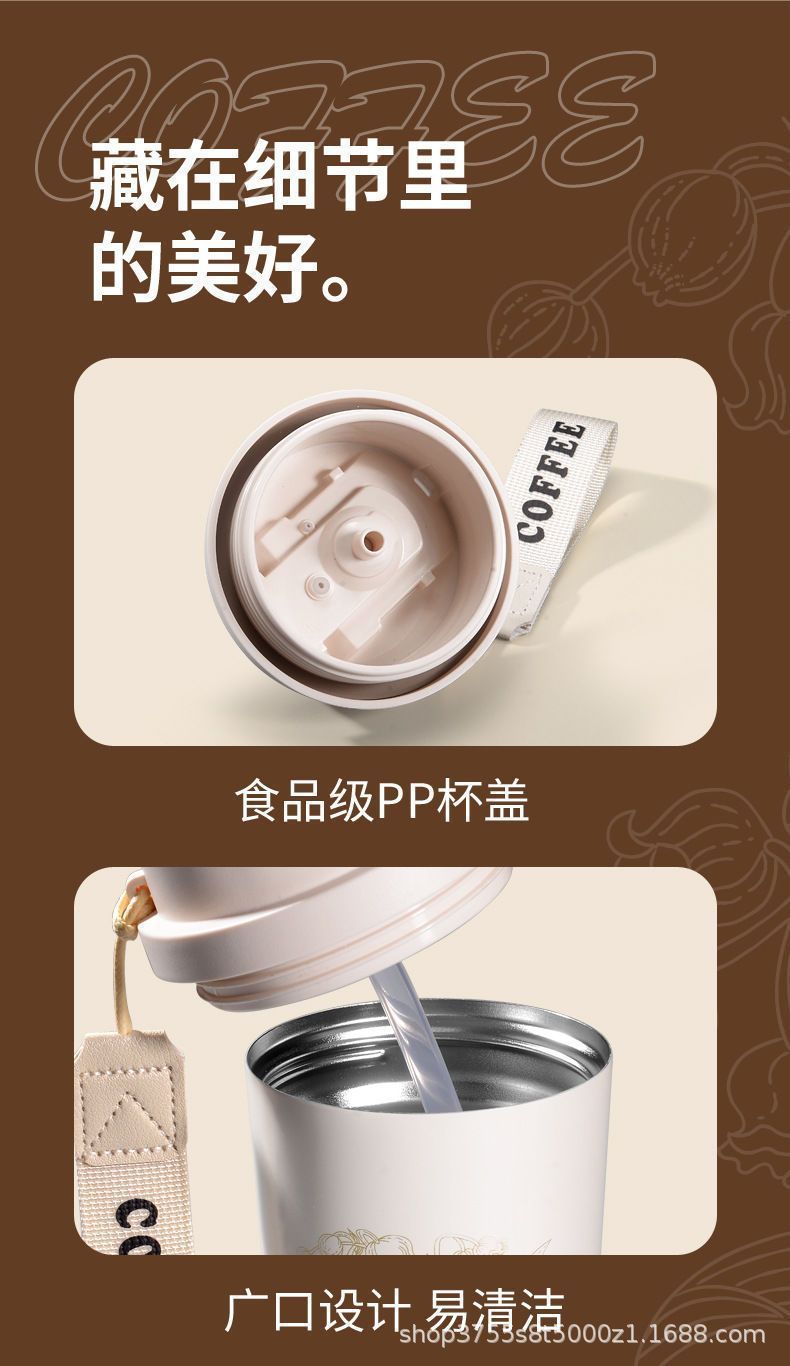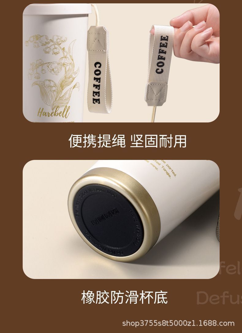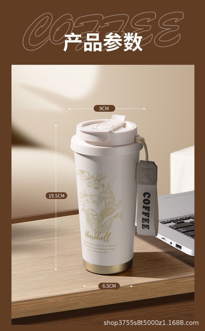 商品名称:新款美式304不锈钢保温杯车载便携随手杯铃兰花时尚带提绳咖啡杯