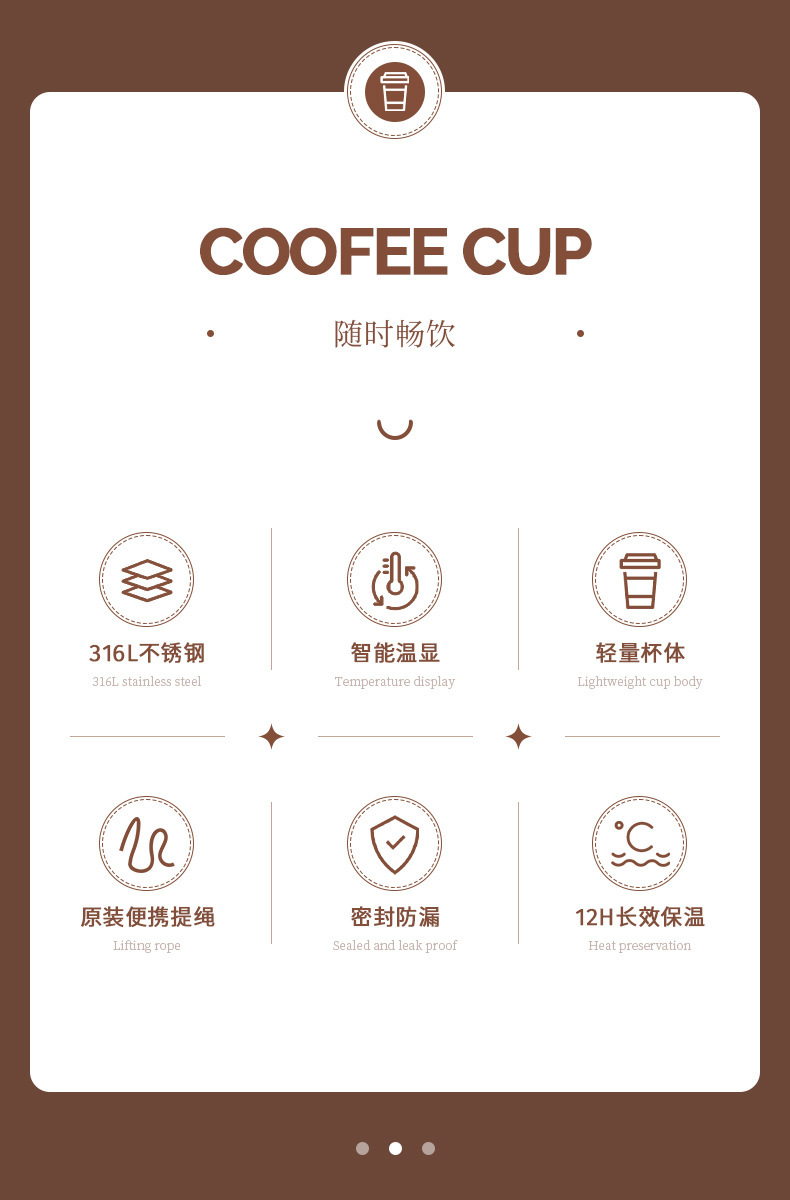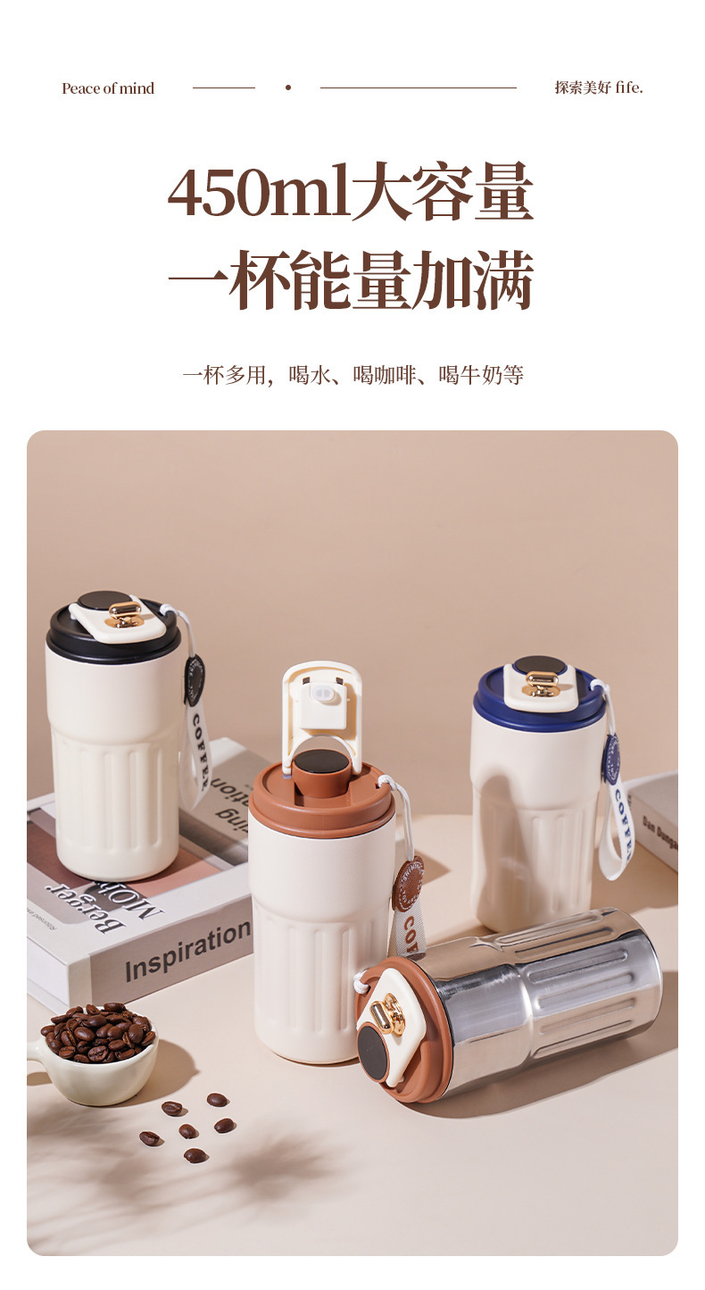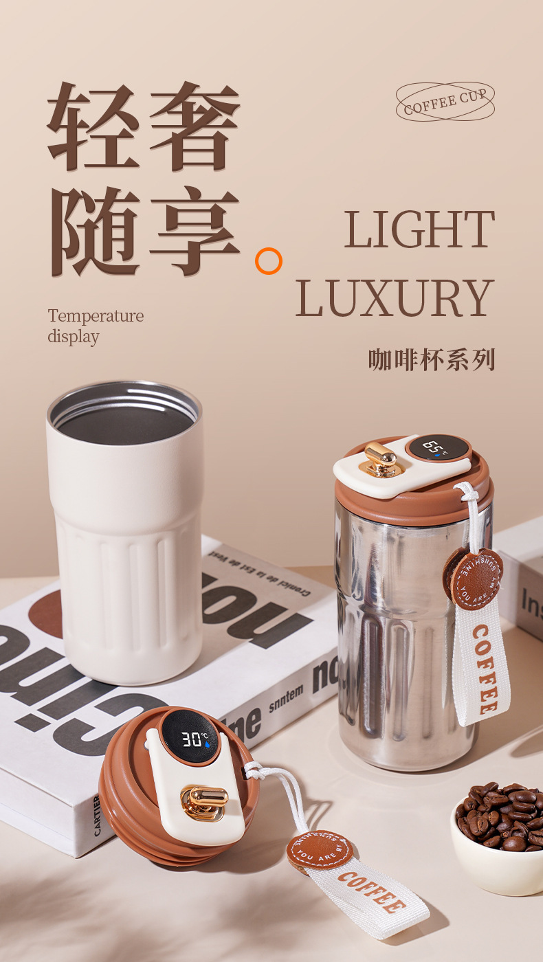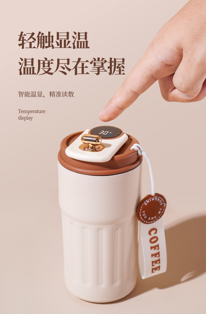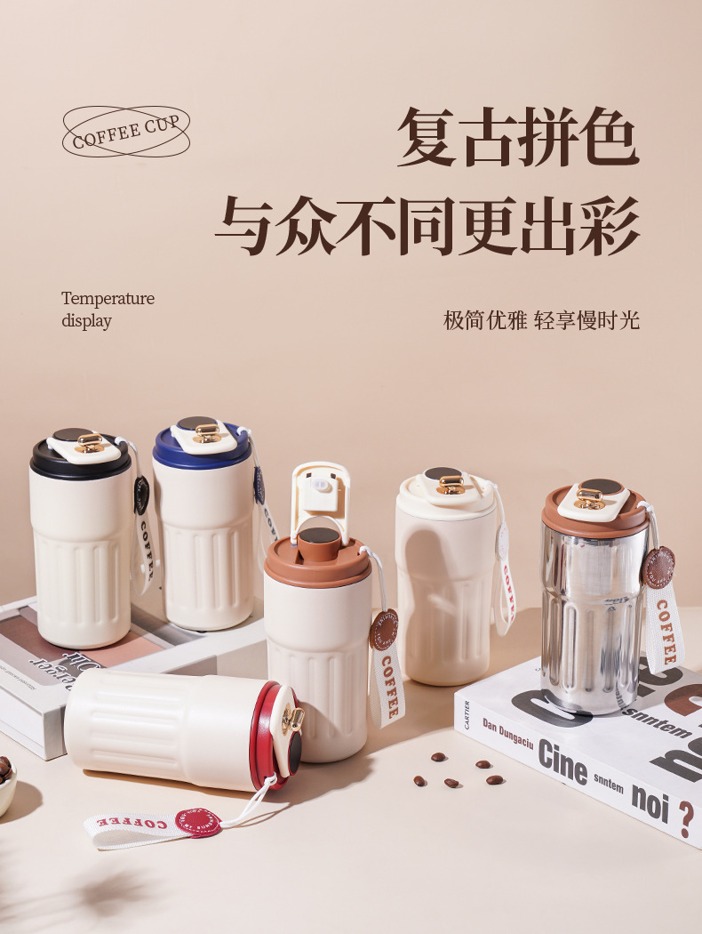 商品名称:抖音热销高颜值家用随手杯水杯316不锈钢咖啡便携智显保温杯女生