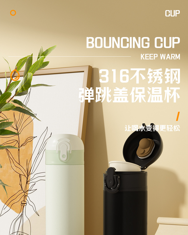316不锈钢保温杯简约商务高颜值弹跳保温杯运动车载礼品杯可