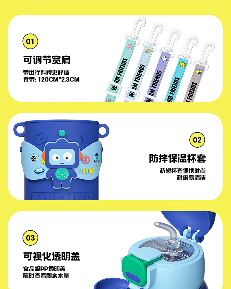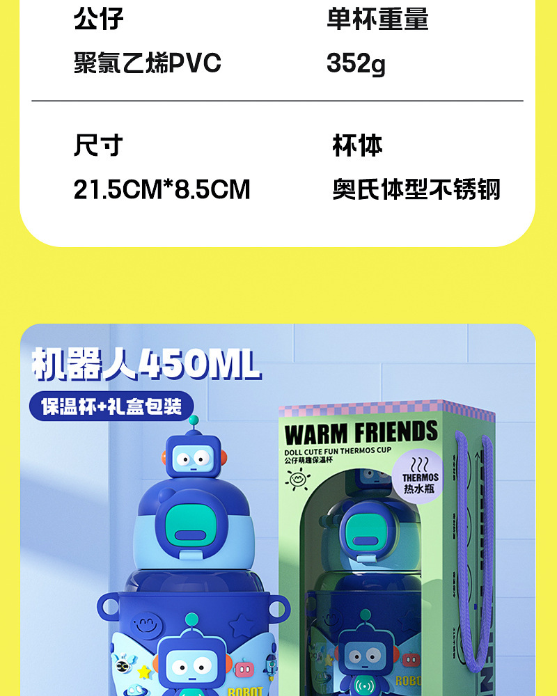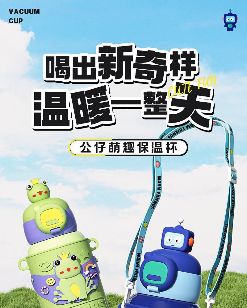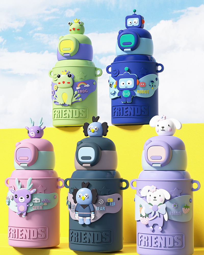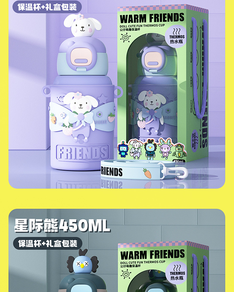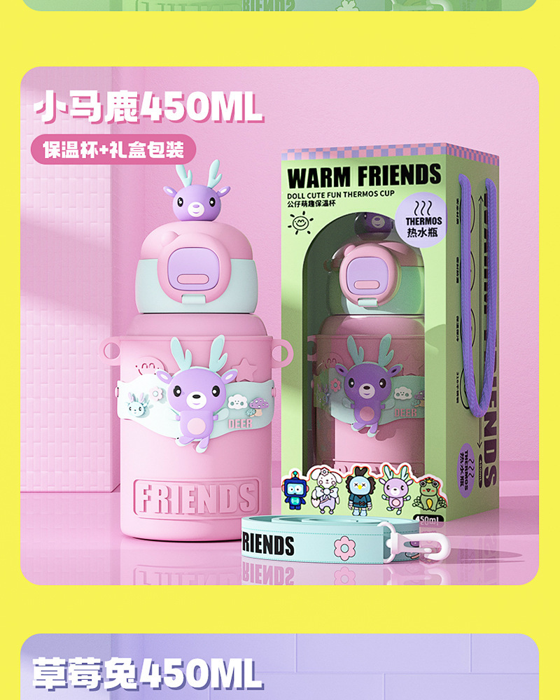 商品名称:新款儿童公仔大容量保温杯高颜值吸管316不锈钢防摔便携背带水杯
