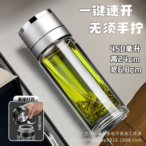 速开杯茶水分离杯车载双层玻璃礼品水杯男士泡茶杯一键开盖玻璃杯